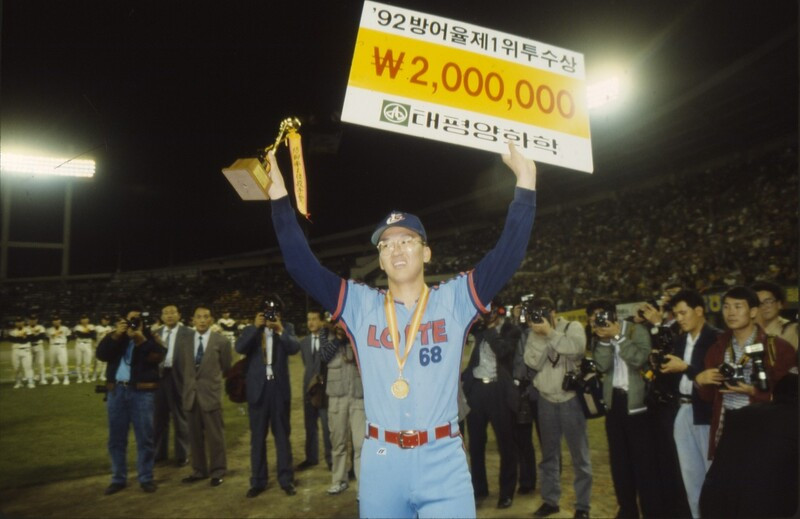 두 번째 우승인 92년은 내가 10살 때라 어렴풋이 기억이 난다. 19살 신인인 안경 에이스 염종석 투수가 대활약을 펼쳤다. 정규리그 평균자책점 2.33, 204와 2/3이닝 투구, 127 탈삼진, 6세이브, 13 완투, 2 완봉. 숫자만 봐도 전성기 류현진보다 더 좋은 기록이다. 큰 키에서 내리꽂는 강력한 직구와 활처럼 휘는 슬라이더는 팬들에게 최동원 이후의 또 다른 안경 에이스의 등장을 알렸다. 부산에서 염종석은 ‘염태지’라고 불렸다. 인기가수 ‘서태지와 아이들’의 리더 서태지와 염종석은 부산에서만큼은 동급이었다. 92년 둘이 같은 해에 데뷔했다고 해서 동급이 아니라, 실제로 인기가 그랬다. 아니, 염태지가 더 인기가 많았다. 서태지 팬들께는 심심한 사과를 드린다. 염태지는 정규리그가 끝나고 포스트시즌에서도 4승 무패 1세이브, 평균자책점 1.47의 성적을 기록하며 팀의 두 번째 한국시리즈 우승의 주역이 되었다. 신인왕과 골든글러브상을 동시에 석권한 처음이자 마지막 가수... 가 아닌 롯데 선수가 됐다.