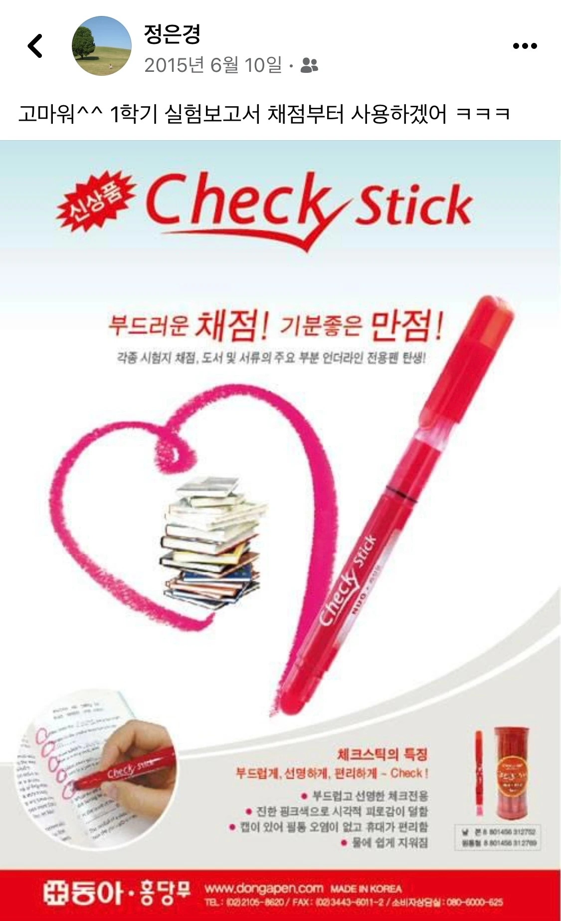 대한민국 고등학교 3학년 학생이 제일 많은 시간을 할애하는 게 아무래도 문제를 푸는 시간일 것이다. EBS 수능 특강과 수능 완성, 그리고 수능 기출문제집, 각종 사교육 학원 문제집 등등 하루 종일 객관식 문제를 푼다고 해도 과언이 아니다. 어느 날 문제를 다 풀고 동그라미를 하고 있는 영균이가 가지고 있는 빨간 펜이 좋아 보여서 관심을 가졌더니 선물로 하나를 줬다. 나도 각종 수행평가 채점을 하려면 빨간 펜이 필요하니까 ㅋㅋㅋ