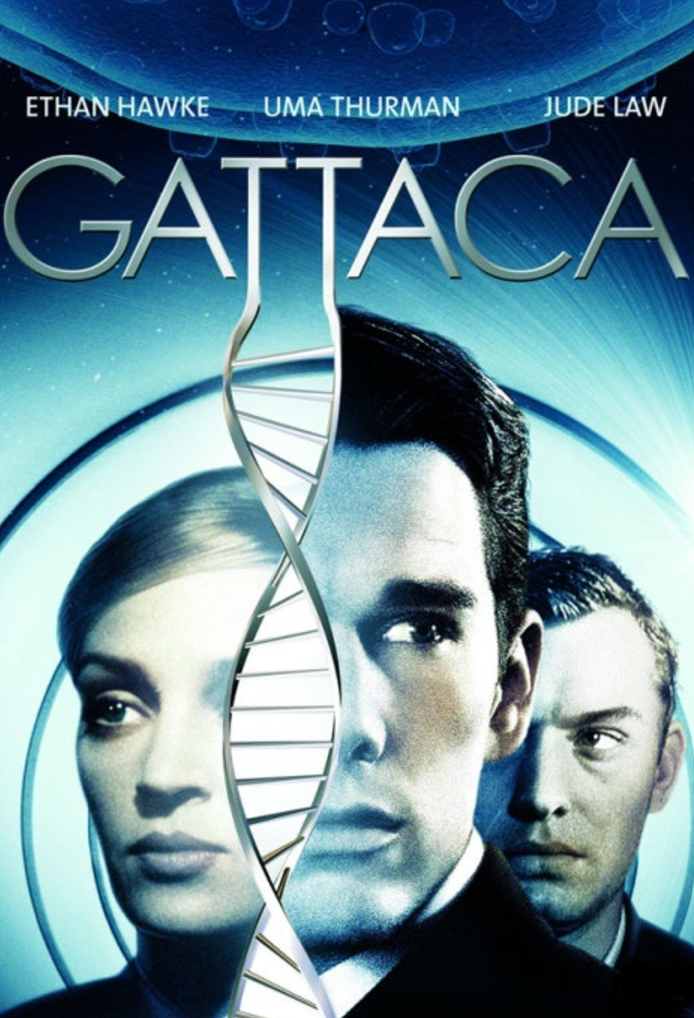 DNA의 4종류 염기 G(구아닌), A(아데닌), T(타이민), C(사이토신)으로 제목을 만든 영화, 가타카(GATTACA). 가까운 미래에 자신이 가지고 있는 유전자에 따라 계층이 결정되는 사회에 대한 이야기로 열등한 유전자를 가지고 있으면 직업을 가질 때도 제한을 받게 되므로 거의 모든 부모들이 인공수정을 통해 자신들이 가지고 있는 유전자 중에 최고의 조합을 찾아서 아이를 낳는 시대, 아이가 태어나면 바로 유전자 분석을 통해 각 질병에 걸릴 확률과 예상 수명까지 알 수 있다.