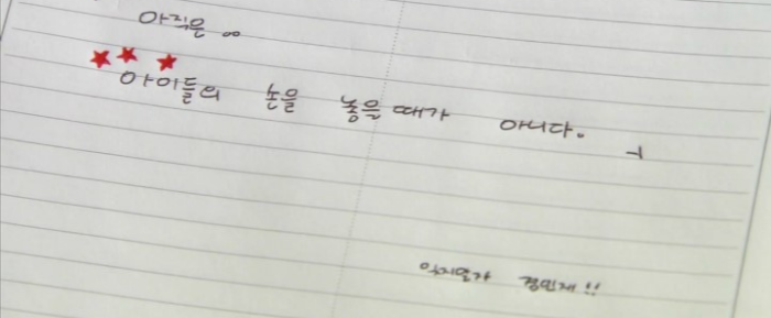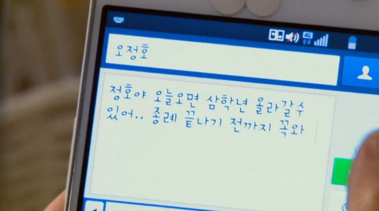 "문득 생각났어요. 흔들리지 않고 피는 꽃은 없다면서요? 선생님 저도 그냥 흔들리고 있는 중인 거 맞죠? 선생님도 그냥 흔들리고 계신 중이죠? 다행이에요 쌤이 계셔서."