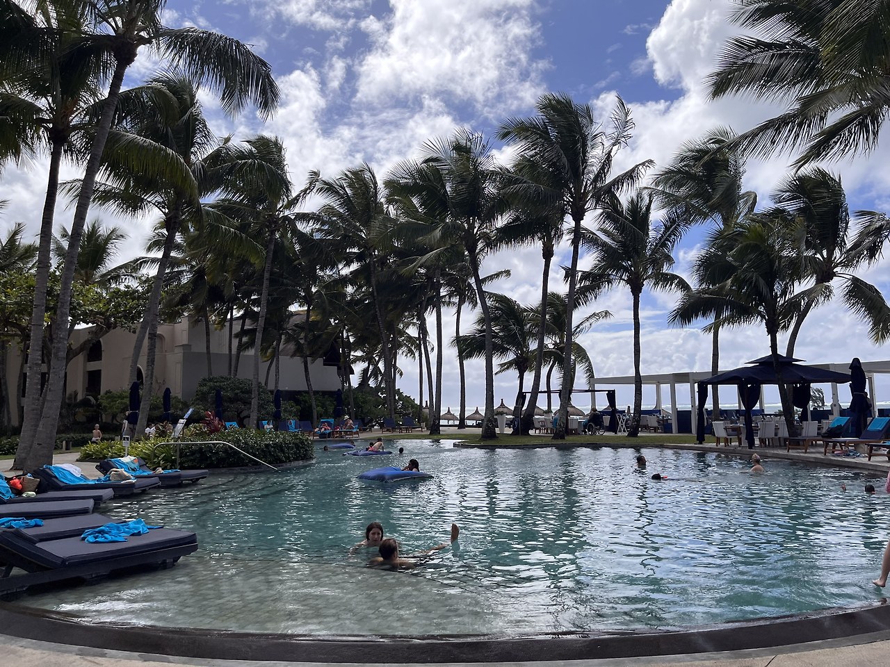 하지만 앞서 말했듯이 모리셔스는 겨울이다. 그래서 수영장 물은 좀 찬 편이다. 물 밖은 그래도 선선한 게 한국의 가을 날씨 같은데 물은 차갑다. 그래서 물놀이가 가능한 온수풀이 존재한다. 이 온수풀에는 남녀노소 상관없이 다 같이 물놀이를 하며 재밌게 논다.