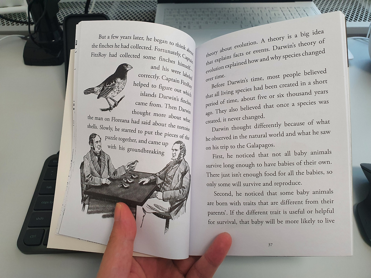 다윈은 거북이 등껍질이 말안장 모양이면 목을 높은 곳으로 움직여 먹이를 얻기 쉽다는 것을 보고 Natural selection 아이디어를 얻었다.