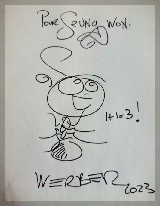 분위기가 무르익고, 사람들이 앉은자리가 몇 번씩 바뀌었다. 네 번째 위스키 사워의 예쁜 잔이 내 앞에 놓일 즈음, 내 옆에는 에스텔 씨가 자리하고 있었다. 그녀는 낮에 있었던 퀴즈에서 신규 입사자의 입에서 나올 리 없는 대답을 한 나를 기억하고는 호기심이 발동했던 차였다. 이런저런 이야기를 나누던 중에 내가 별다른 취미는 없고 그저 남는 시간에 글을 읽거나 쓰는 것을 좋아한다고 말하자 그녀는 거의 추임새에 가까운 질문을 던졌다. 프랑스의 소설도 읽어보았느냐고, 그녀가 물었다. 나는 술잔을 내려놓고 스마트폰을 꺼내 사진 한 장을 그녀에게 보여줬다. 서울의 한 칸짜리 자취방 창틀에 가지런히 모아둔 책을 찍어둔 것이었다. 한글로 쓰인 책의 제목을 알아볼 리 없는 그녀에게 나는 설명을 보탰다. 올해 목표 중의 하나가 베르나르 베르베르의 소설 완독이었는데, 생각보다 빨리 끝냈다고 내가 말했다. 그녀는 놀란 듯이 내 손에 들린 스마트폰 속 사진과 내 얼굴을 번갈아 쳐다보더니, 손에 든 이름 모를 분홍색의 칵테일을 단숨에 들이켜고 말했다. 베르나르 베르베르가 그녀의 친구와 친하다는 말이었다. 생각해 보면, 프랑스계 기업이다 보니 상당수의 중역과 임원은 프랑스인이고, 파리에 거주하는 경우가 많다. 파리는 서울의 1/6 밖에 되지 않는 작은 도시인만큼, 인맥의 가지를 뻗기에는 제격이기도 하다.