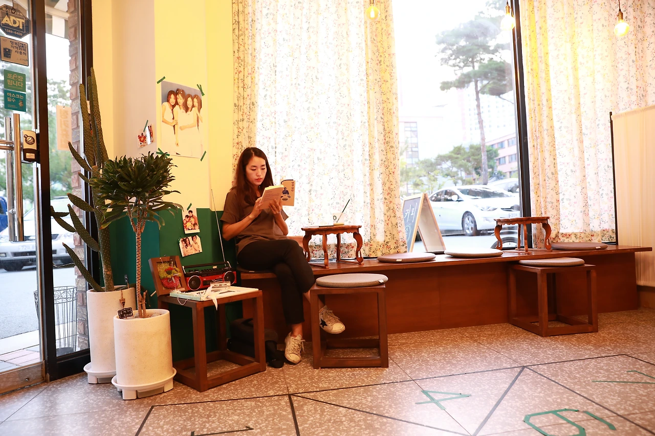 그 카페가 사라진 자리에는 어떤 가게가 생겼나 궁금해서 근처를 지나가다가 오랜만에 발길을 돌려봤다. 내가 알고 있던 진한 고딕체의 촌스러운 이름은 없어지고 세련된 영어간판으로 바뀌었지만, 역시나 그 자리는 카페가 어울리는 자리가 맞았다. 새로운 카페에 호기심이 생겨 살포시 문손잡이를 당겨봤다. 어서 오세요! 나긋한 인사가 귀를 타고 들어왔다. 부동산에서 집을 보러 온 사람처럼 나는 발앞꿈치에 힘을 주고 고양이마냥 소리 내지 않고 걸어보려 애쓴다. 두리번두리번. 고개를 움직이는 것도 천천히. 나의 움직임 중에서 바쁜 것은 오직 눈뿐이다.