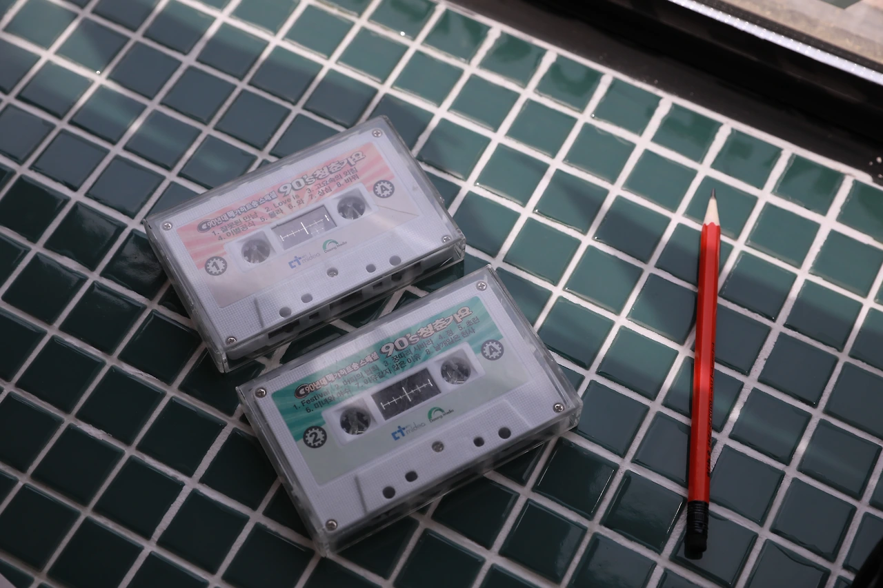 카페 오디오 선반에 있는 카세트테이프 하나가 눈에 띈다. 이름도 촌스럽기 그지없는 ‘90년대 메가 히트송 스페셜 청춘가요’다. 메가, 히트. 청춘. 단어부터가 그 시대를 알 수 있게 만든다. 1A, 1B면에 수록된 노래들과 가수들을 천천히 떠올려본다. 내게는 여전히 세련되게 느껴지는 터보의 어느 째즈바, R.ef의 이별공식을 오래된 그 빨간색 오디오에 넣어 재생시켜보고 싶다.