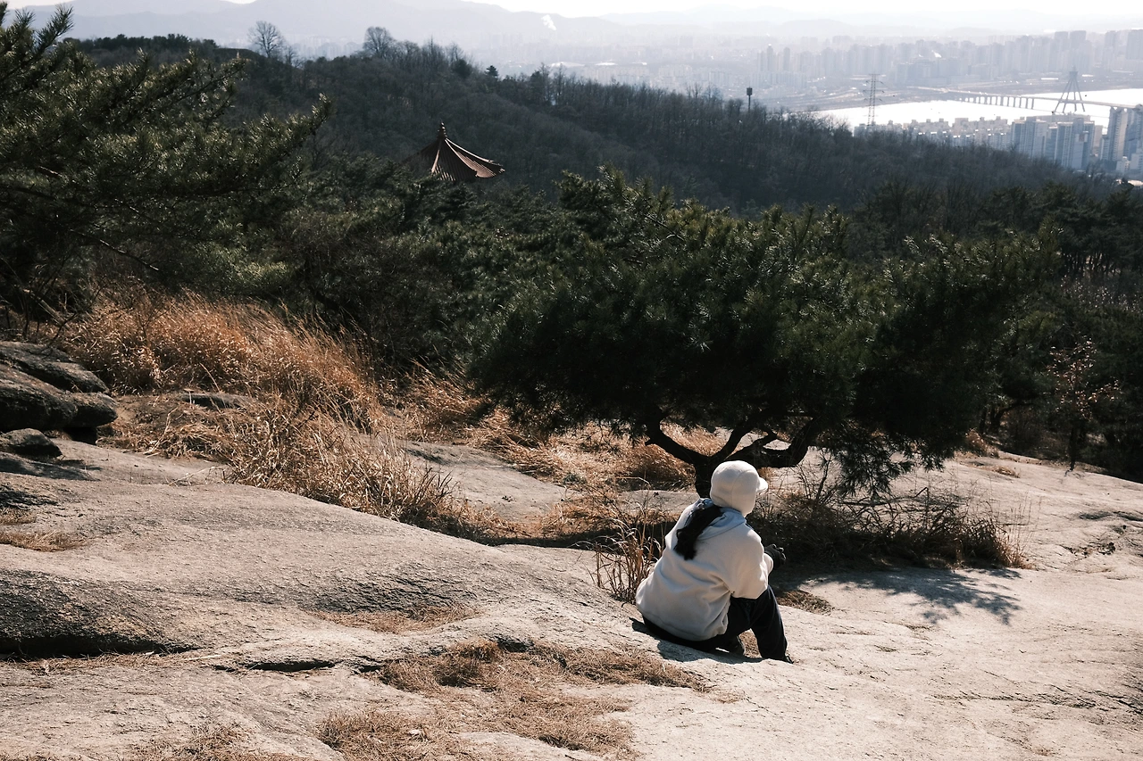 개구리는 중간중간 사진을 찍느라 멈춰 섰고 나는 멈추면 더 힘든 걸 알기에 쉬지 않고 계속 올라갔다. 나를 놓친 개구리가 뒤에서 소리쳤다. “좀 천천히 가요! 경치도 좀 보고!” 나는 억울했다. ‘아니! 평소에는 내가 조금 뒤처지면 쉬면 더 힘들다면서 일으켜 세우면서. 왜 본인이 뒤쳐질 땐 나보고 멈추래?!’ 잠깐 멈춰 앉아있는데 얼어붙는 것 같은 강풍에 땀이 갑자기 식으면서 몸이 추워지고 심장이 미친 듯이 뛰기 시작했다. 나는 다시 일어나 무거운 발을 내디뎠다. 위에서는 나이 지긋한 어르신들이 가볍게 내려오고 있었다. 한쪽에서는 돗자리를 깔고 앉아 도시락을 먹는 어르신도 있었다. 개구리가 감탄했다. “와, 어떻게 이 추위에 바닥에 앉아서 밥도 먹지?” 나는 숨을 크게 들이마시고 내뱉으며 생각했다. ‘어쩌면 저 어른들은 이미 이 추위보다 더 한 인생의 풍파를 많이 겪어왔기에 겨울날 등산쯤은 그냥 놀이가 아닐까? 나도 저 나이쯤 되면 등산이 공원 산책처럼 쉬워질까? 아니 저분들도 사실은 나처럼 그렇게 쉬운 건 아닌 걸까?’ 알 수는 없지만 나는 숨이 차도 확실히 머릿속이 늘 시끄러운 건 맞는 것 같다.