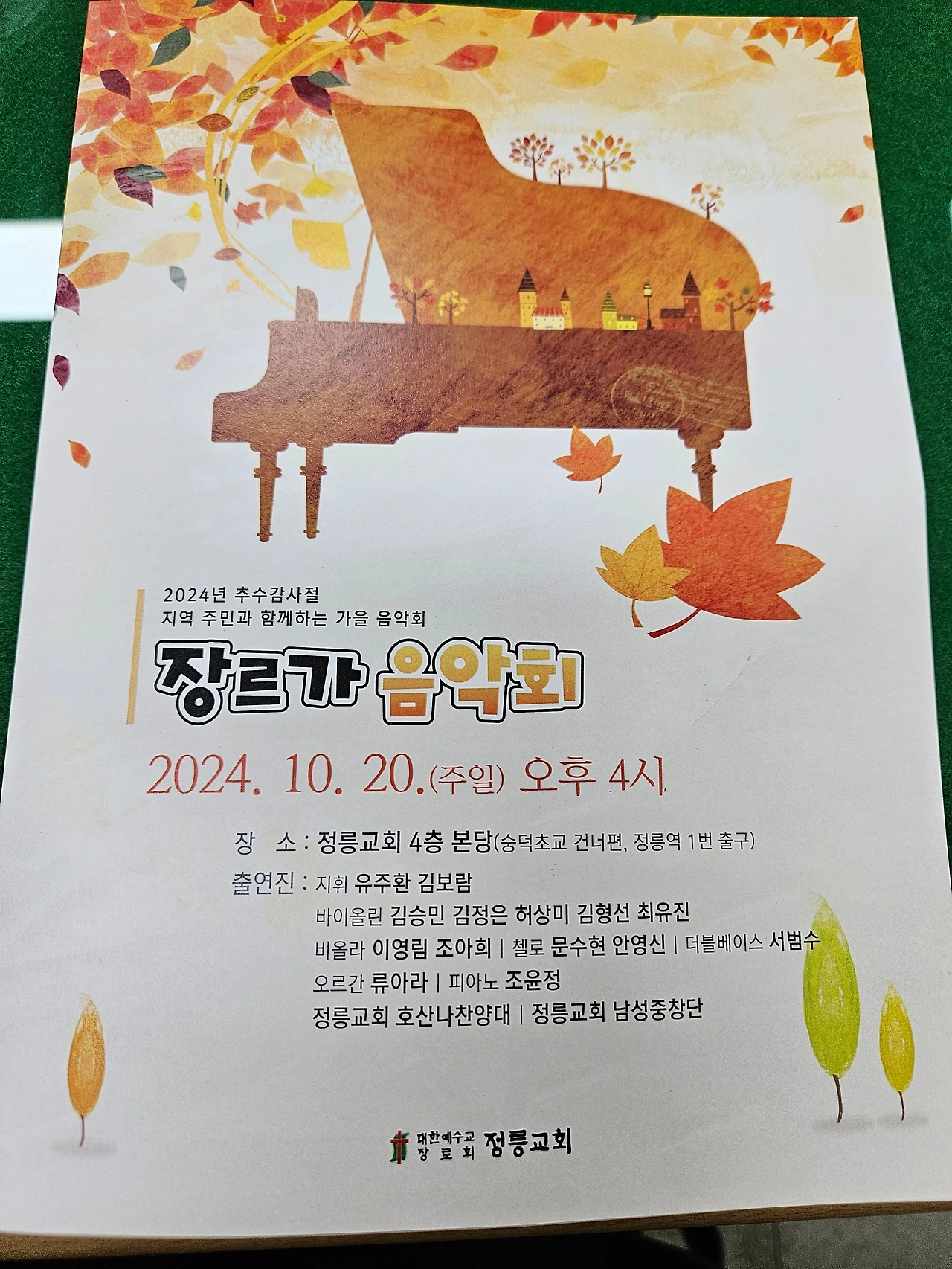 실력 있고 인성 좋으신 한 분, 한 분의 연주자분들께 감사드리고 같이 연주하도록 초청해주신 정릉교회에게도 감사드립니다. 날씨까지 좋아서 기분 좋은 가을날의 음악회였습니다.