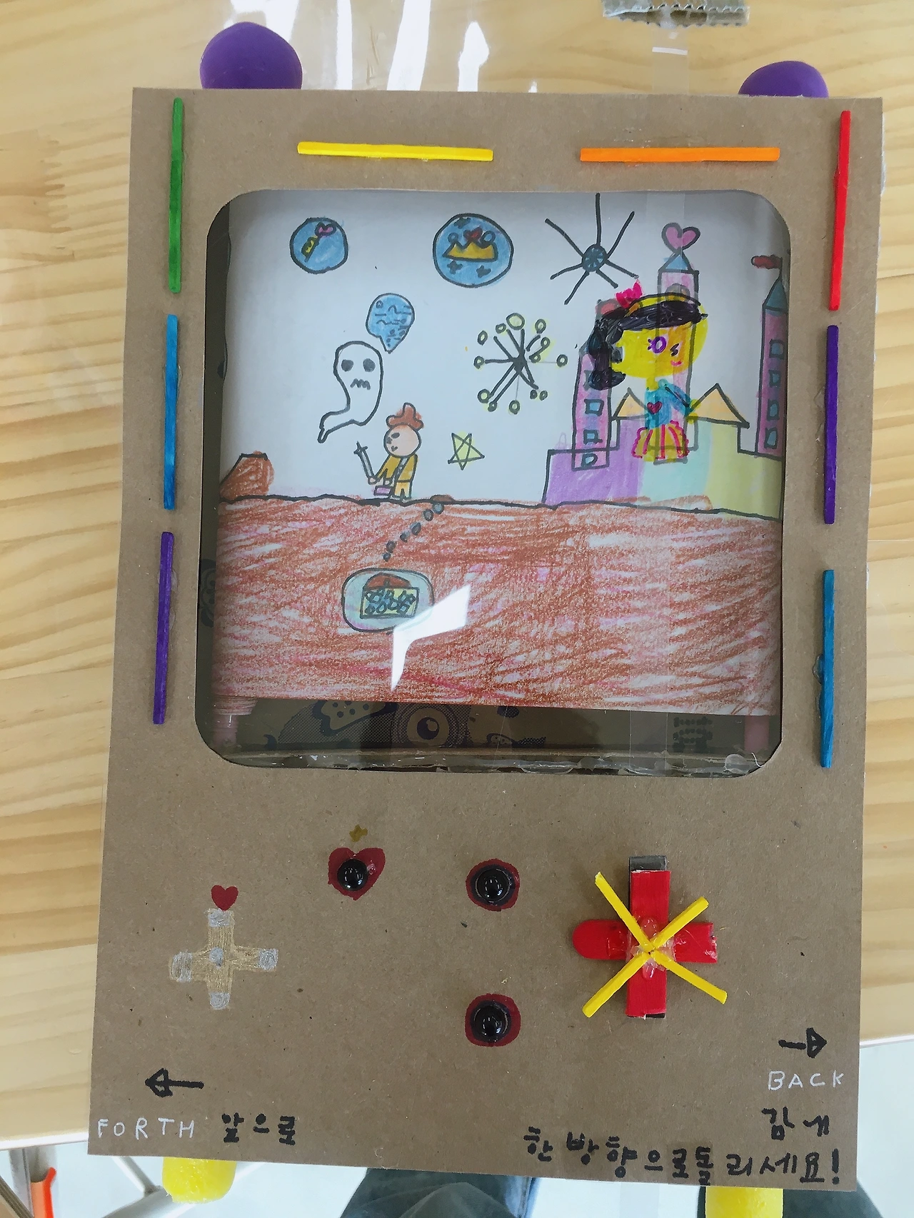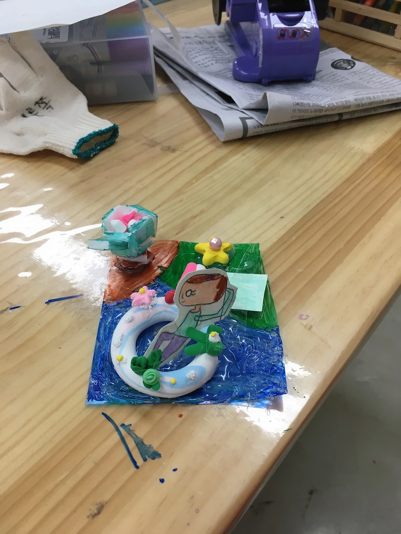 만들기가 망가지면 울기도 하고 작업이 매끄럽지 못하면 답답해하기도 한다. 20분 정도 폐품이나 부자재로 자유롭게 만드는 시간이 있는데, 처음에 무엇을 만들지 당황하는 친구, 제목 짓기를 싫어하는 친구, 친구들과 공유하는 것을 어려워하는 친구도 있다. 하지만, 한 달이 지나면 수동적인 미술활동에만 익숙했던 친구들도 주변 친구들과 동화되며 창의적인 활동이 가능해진다. 5달이 지나면, 내향적인 친구가 제목을 짓고 감정을 글과 말로 표현한다. 작업 과정 중 의도대로 안되면 힘들어했던 친구는 1년이 지나오니 자신을 날쌘돌이라고 불러달라며, 빠른 속도, 좋은 퀄리티로 원하는 것을 창작하여 학원을 유유히 나간다. 고장 나도 또 만들면 돼요 라는 말은 학원에서 자주 들리는 소리다. (물론 개인의 성향에 따른 변화 속도는 다르다.)