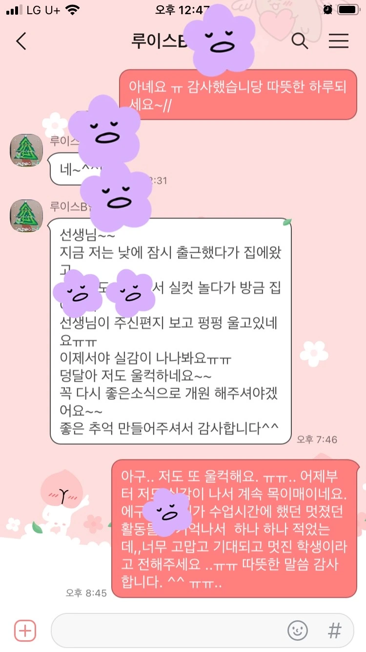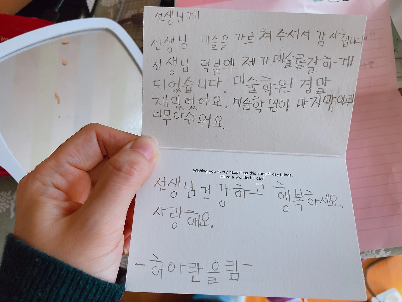 학원을 운영했던 어느 순간보다 더 진심을 담아서, 더 꼼꼼히, 준비해, 작별인사 편지를 쓰고 사진을 현상해 가정으로 보내드렸다. 아이들 한 명의 한 명의 개성과 장점을 적어서.