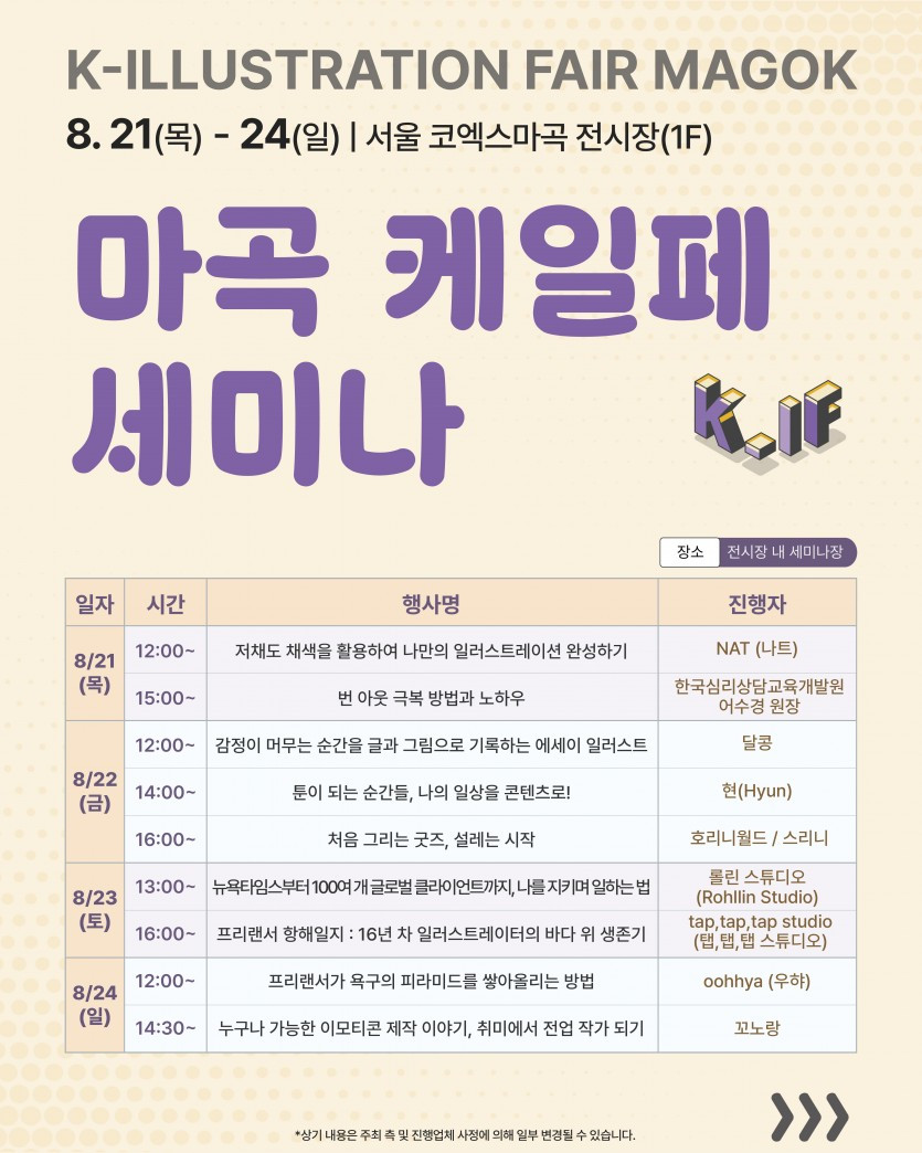 이번 K-일러스트레이션 페어 마곡 세미나에서 스피커로 참여하게 되었습니다. 세미나에서는 16년 전 저의 데뷔 초반 경험부터 뉴욕타임스와의 협업 과정을 중심으로, 어떻게 글로벌 무대에서 일러스트레이터로 자리 잡을 수 있었는지를 나누려 합니다.