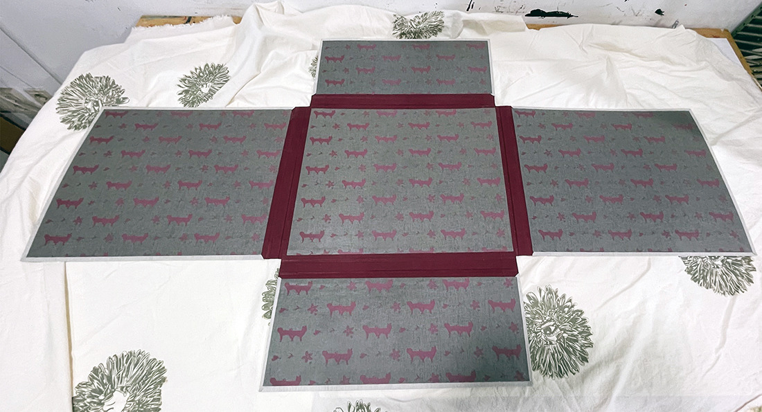 Having crafted silkscreened artist books since 2008, my typical choice for hardcovers involves an accordion-style binding. However, for this particular project, I opted to emulate the shape of the Tamgudang reprint as closely as possible, injecting a touch of modern flair.