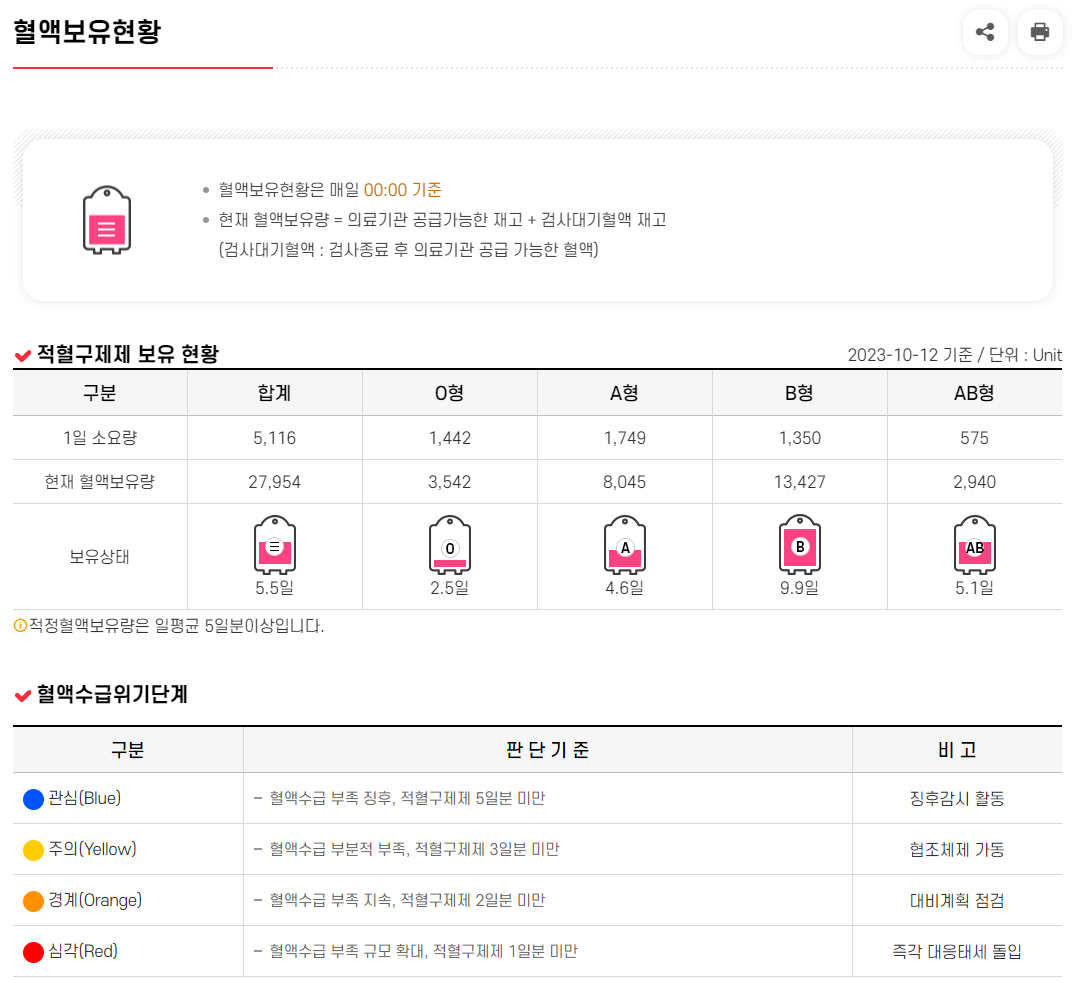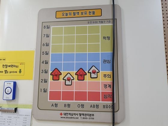 걸어서 동네 고등학교를 다니다가 대학생이 되고 전철을 자주 타기 시작했다. 역 출구 계단을 내려올 때면 창 밖으로 헌혈의 집이 보였다. 헌혈의 집이 있던 건물은 꽤 커서 1층에는 가게들마다 내놓은 스탠딩배너들로 복잡했다. 온갖 유행어로 도배된 룸카페, 보드카페, 술집, 음식점 배너들 사이로 "사랑의 실천, 헌혈" 배너는 묵직했다. 점잖아서 눈이 갔다. 그 옆 배너에는 그 날의 혈액보유량을 관심/주의/경계/심각으로 구분해 보여주고 있었다. 자주 오가는 길이라 매일 혈액형별 보유량을 확인할 수 있었다.