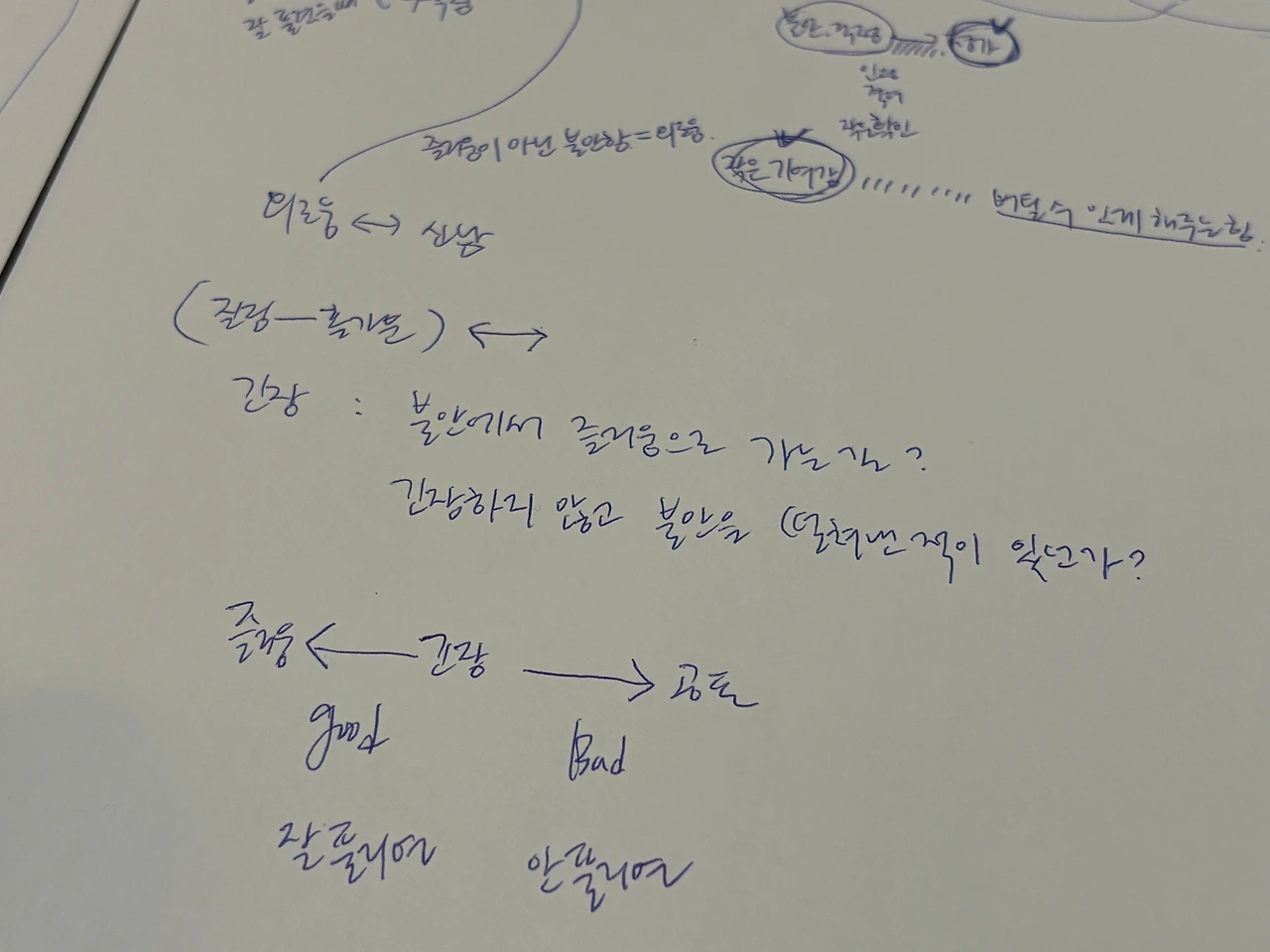 생각나는 감정들을 하나씩 적고, 그 감정과 얽힌 사건들, 그때의 내 생각을 꺼내봤다. 신기하게도 감정을 중심으로 회고하니 중요한 순간들이 훨씬 더 쉽게 떠올랐다. 기억을 억지로 끌어올리지 않아도 감정이 먼저 이끌어줬다.