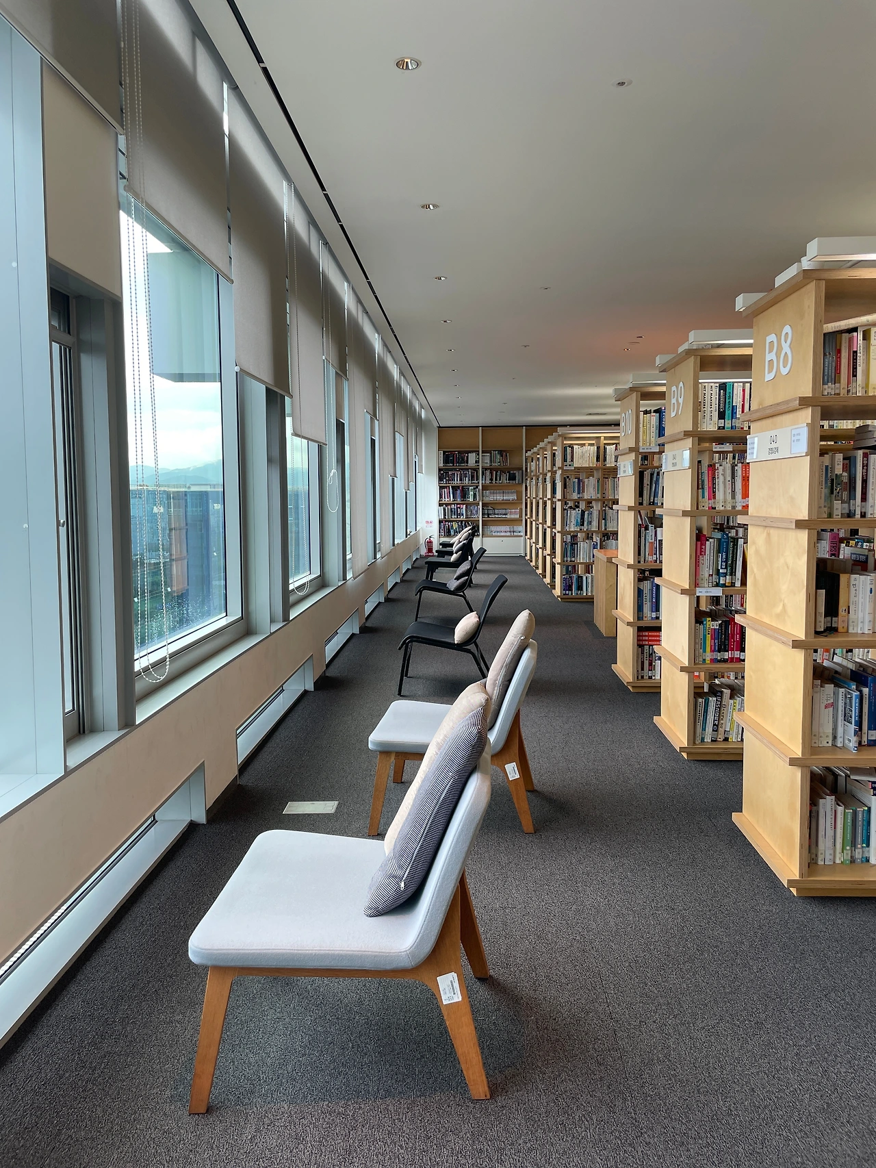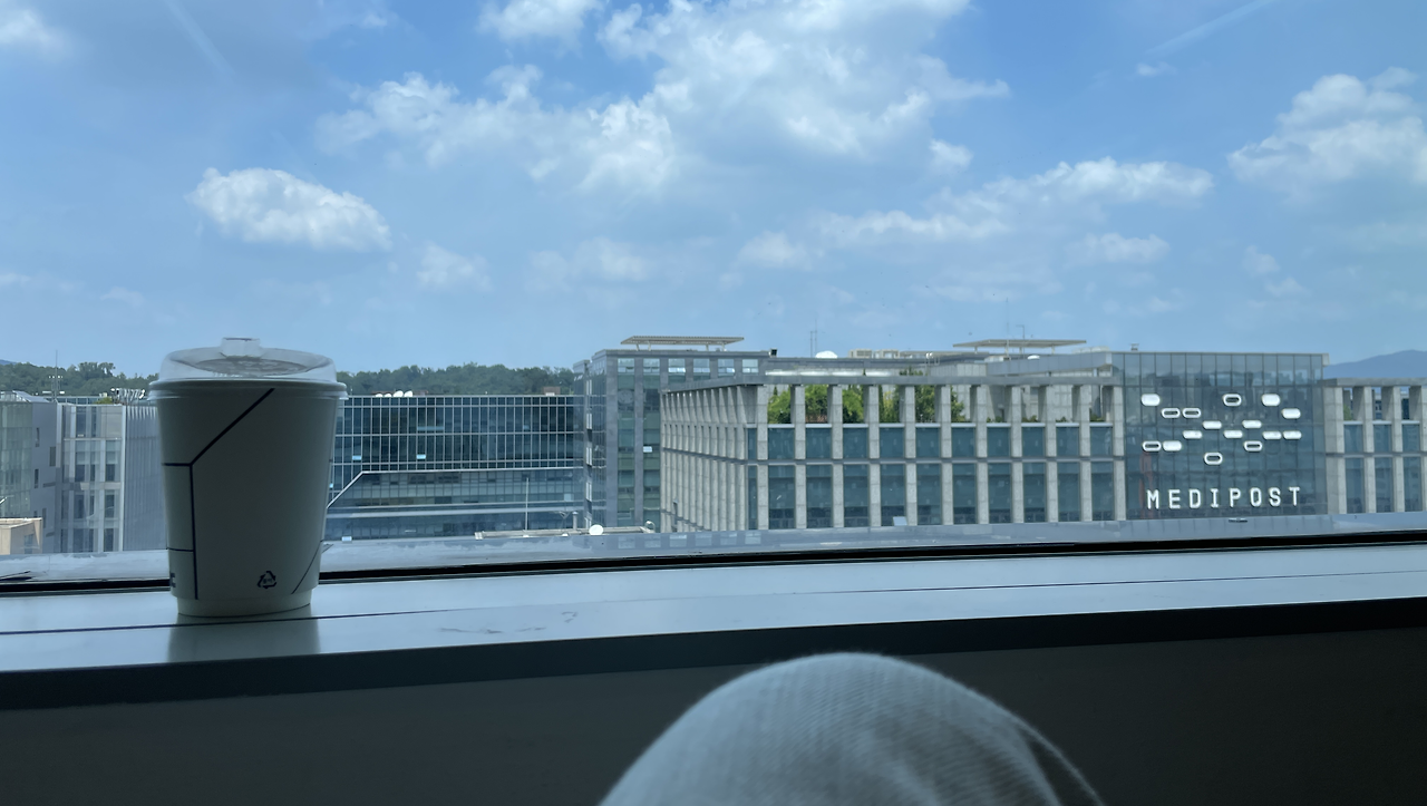 회사 도서관은 12층에 있다. 회사 꼭대기 층이다. 가장 높은 층이면서 전면 유리로 되어 있어 개방감이 있고, 가운데는 풀내음을 맡을 수 있는 정원이 있다. 모여 앉을 수 있는 공간도 곳곳에 있고, 혼자 편안하게 독서를 즐길 수 있는 의자들도 창가에 배치되어 있다. 도서관 의자 브랜드를 묻는 질문이 사내 게시판에 올라올 정도로 편안한 의자들이 종류별로 구비되어 있어서 그날의 기분에 따라 의자를 골라 앉는 것도 소소한 즐거움이다. 혼자 만의 시간이 필요할 때면 주로 한국 에세이 책장 쪽 창가에 있는 1인용 라운지체어에 앉는다. 부드러운 촉감의 쿠션을 안고 하늘을 보거나 핸드폰을 만지거나 책을 본다. 뭘 하는지는 중요하지 않다. 평소 일하는 공간을 벗어나서 하늘을 보고, 책상 의자 대신 라운지체어에 기대어 앉고, 느긋함을 즐기면 그뿐이다. 트인 시야, 책장으로 가득 찬 아늑한 공간 속에서 긴장을 풀고 새로운 에너지를 채운다. 주변 공기를 바꾸는 기분이랄까. 사무실 의자에 녹아내리듯 앉아 의미 없는 인터넷 서핑을 하고 있는 것보다 도서관에서 10분 정도 가만히 쉬는 게 더 회복된다.