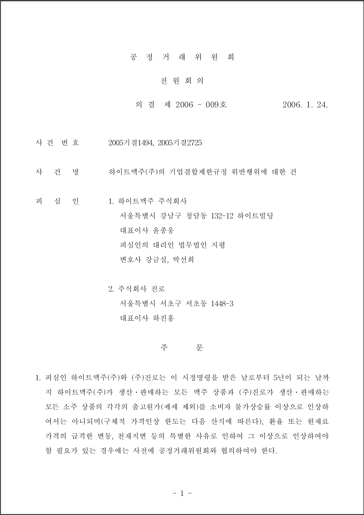 공정거래위원회는 하이트의 진로 인수가 독과점에 해당하는지 발표합니다.