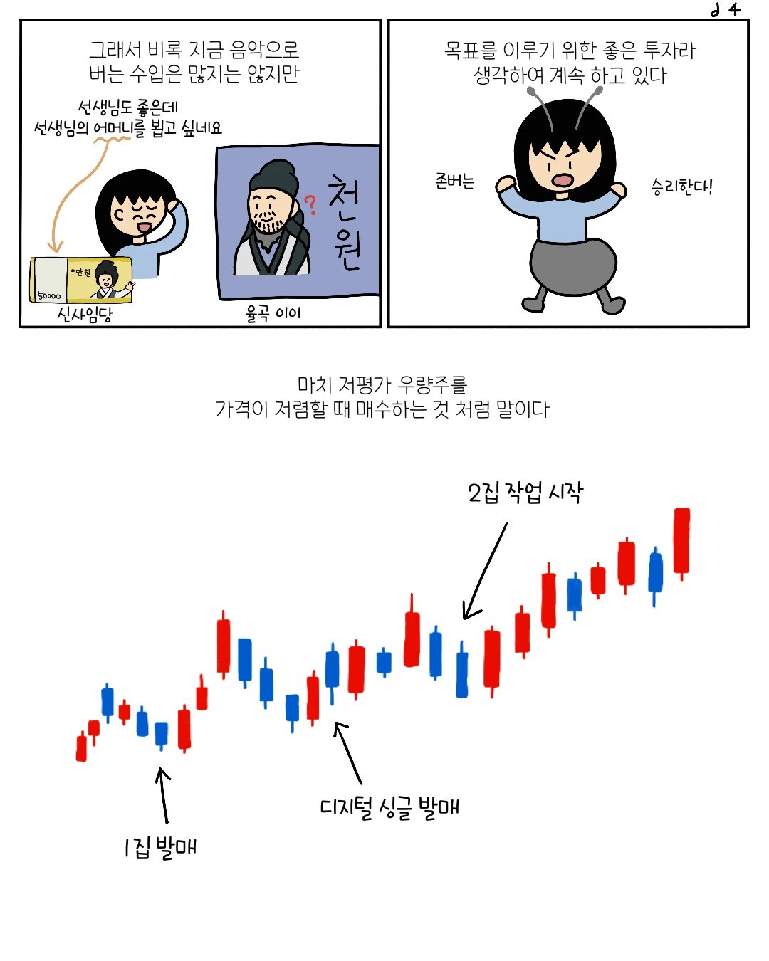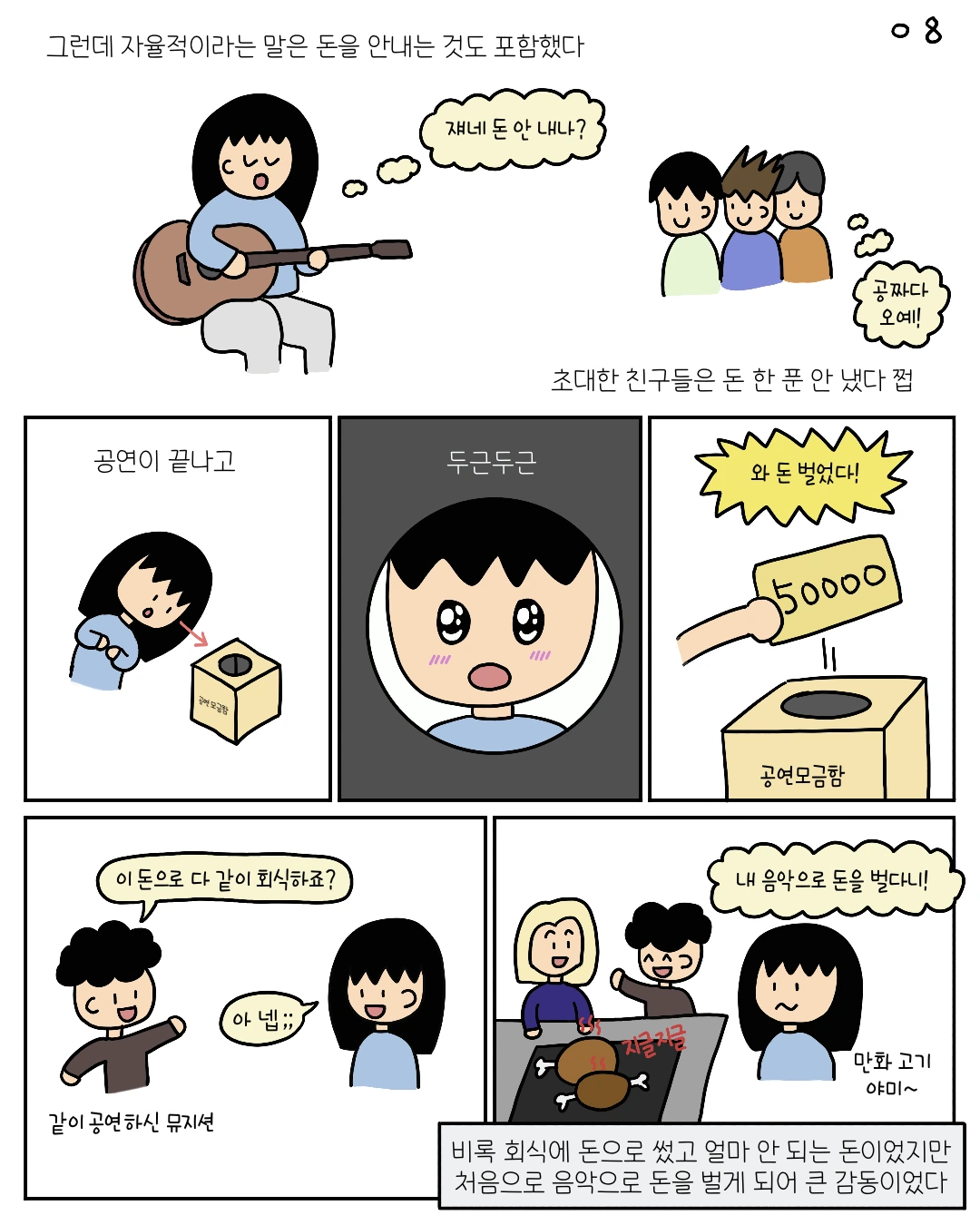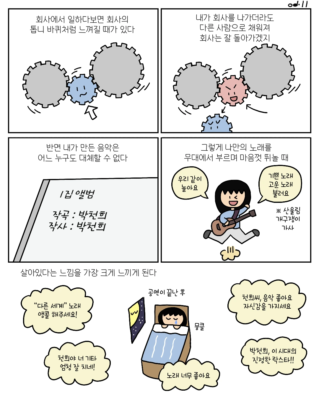 음악을 하며 생겼던 수입은 단순한 돈이 아니라 제가 음악을 계속 해나갈 수 있는 원동력이 되었습니다. 제 음악을 칭찬해주셨던 말들은 아직도 생생히 기억에 남아 제게 힘이 되고 있어요.