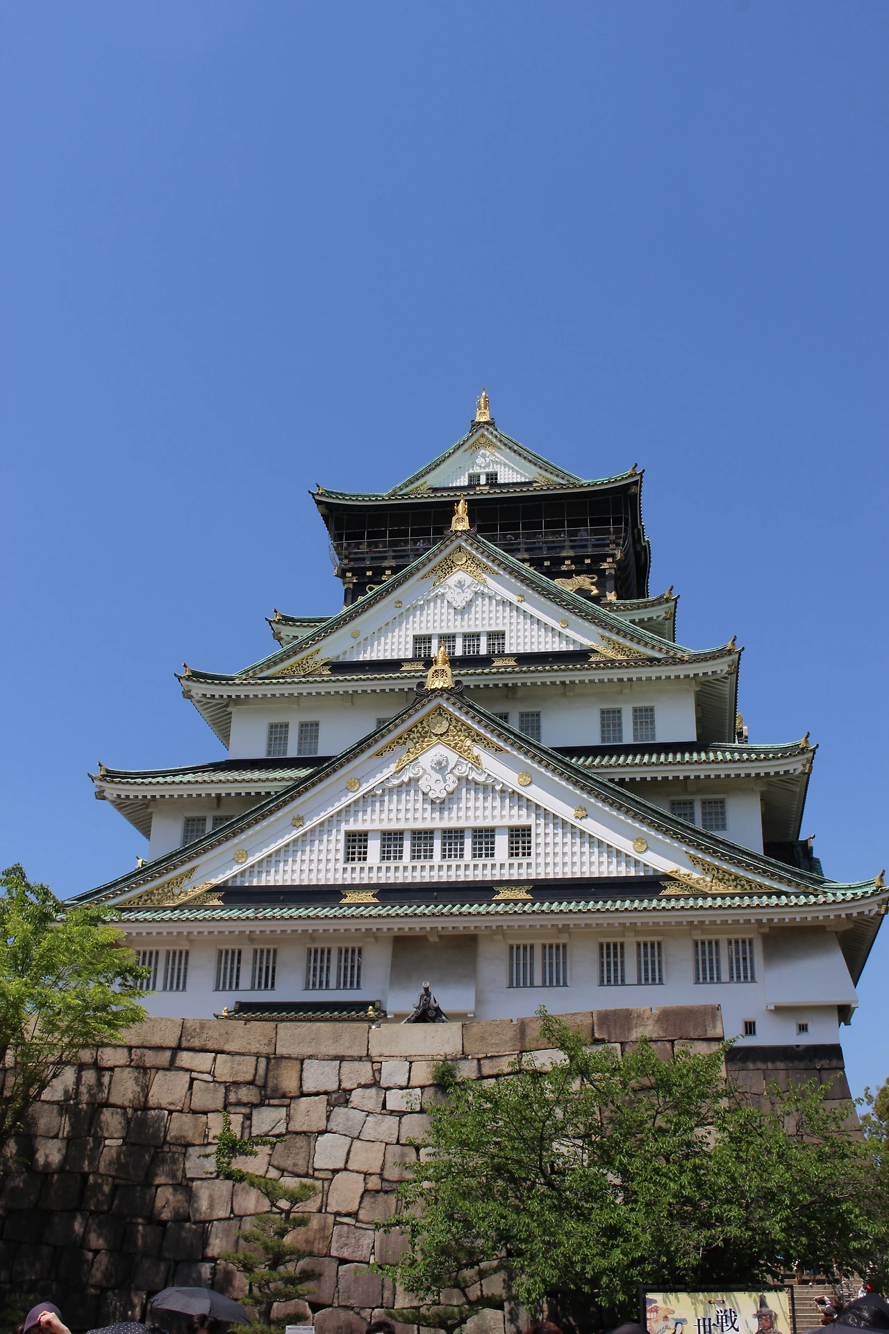 오사카 성에 도착! 했는데 세상에 네 번째로 와보는 곳이었지만 그렇게 긴 줄은 처음 봤다. 오사카 성에 들어가기 위해 티켓을 끊는 매표소에서 수십 미터가 되는 인파가 줄을 지어 서있었다. 애초에 오사카 성은 올라가고 내려오는데 계단을 이용해야 해서 부모님이 힘들어하실까 봐 들어가려고 하진 않았다. 그렇지만 어마어마하게 긴 줄을 보니 아예 못 들어가겠구나 싶었다. 역시 골든 위크였다.