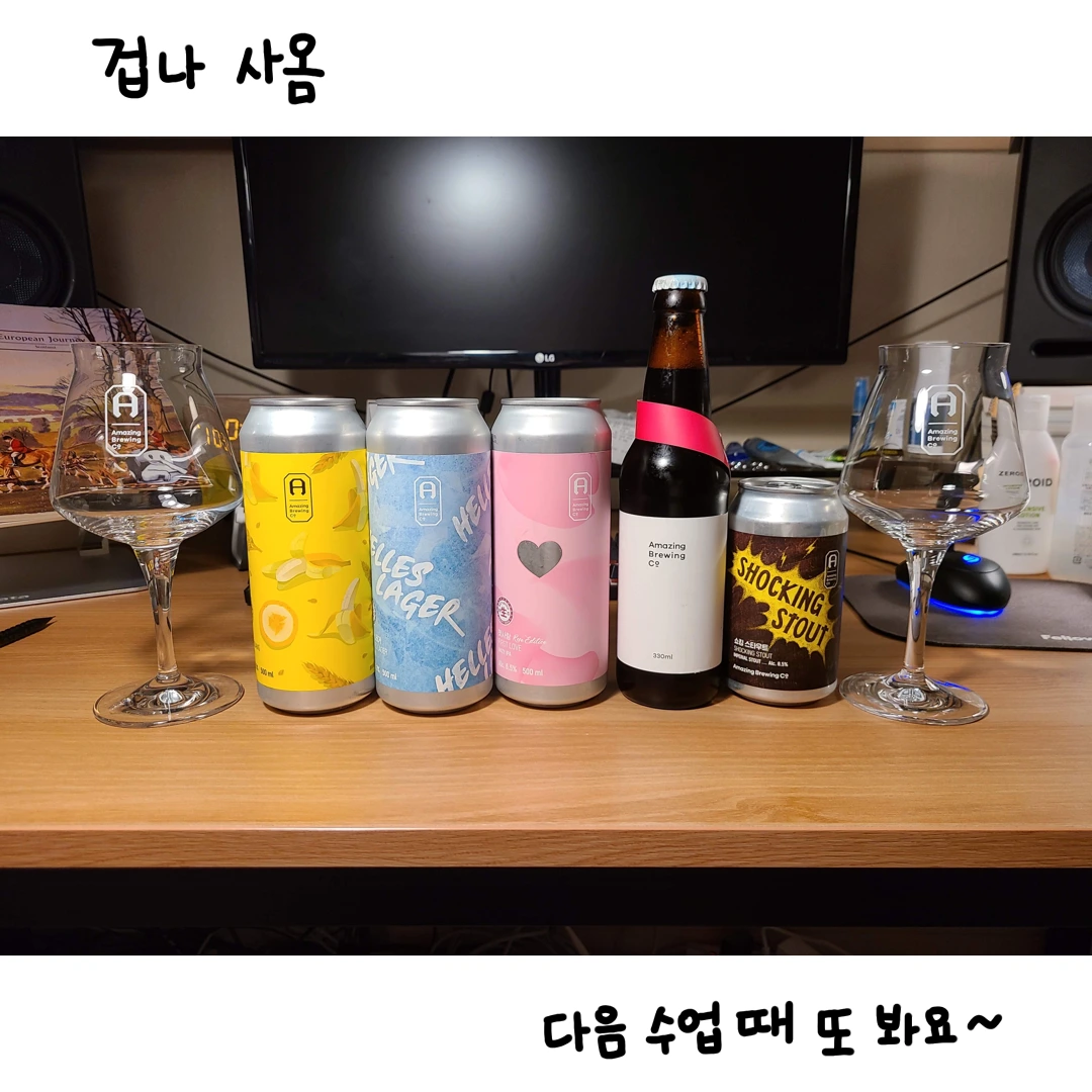 어메이징 브루잉 아카데미에서 두번째 BJCP 수업을 듣고 왔어요. 몰티한 맥주 3개를 비교 시음하니 각 스타일의 차이를 쉽게 느낄 수 있어서 좋았어요. 코로나 때문에 4개월만의 수업이었어요 ㅠㅠ 코로나가 끝나면 좋겠어요. 힘든 시기이지만 금방 지나갈거에요. 모두 화이팅입니다!