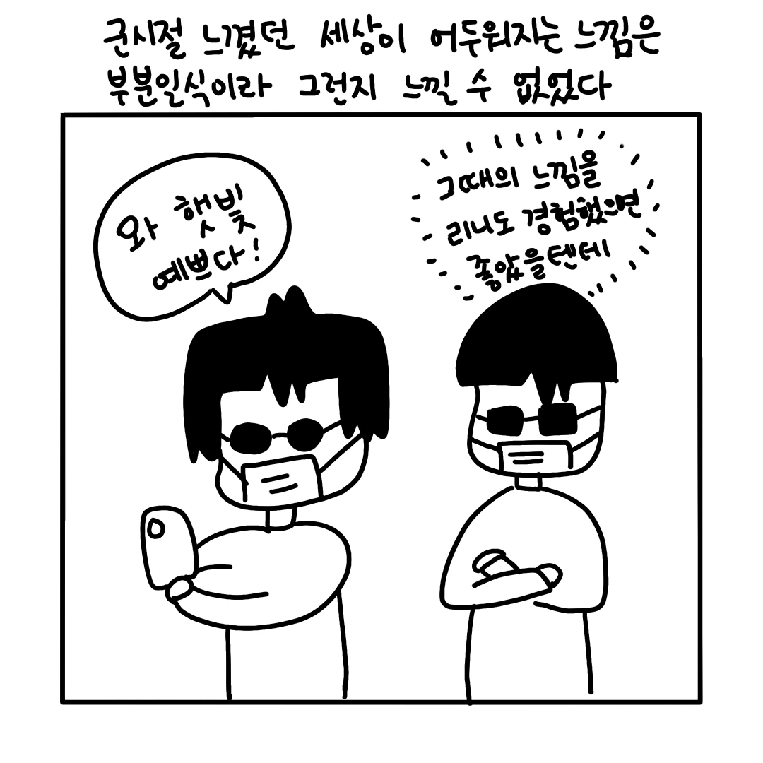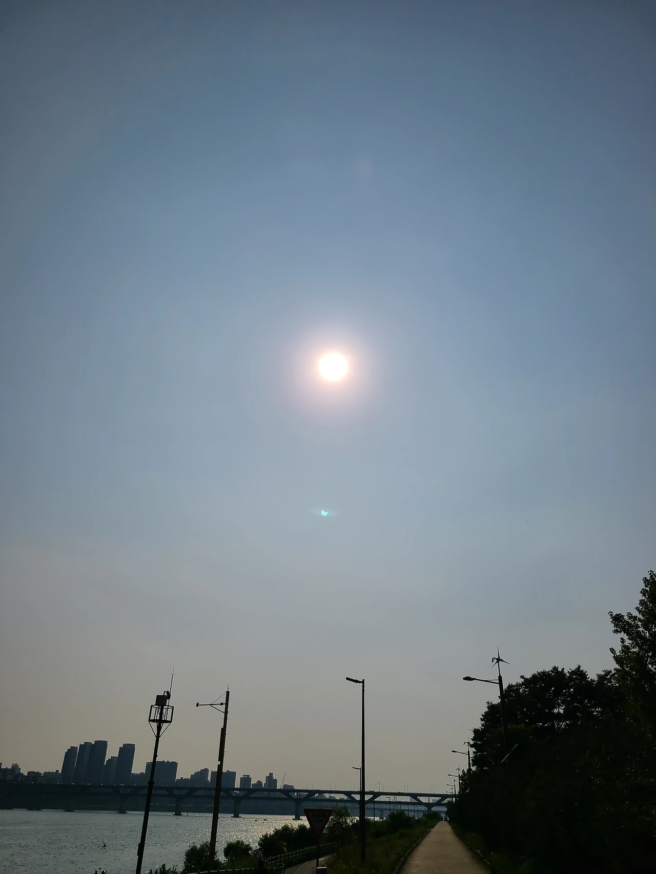 오늘은 부분일식이 일어나는 날이었죠. 한강에 가서 부분일식을 보고 왔습니다. 신기한데 눈이 멀 것 같았어요 ㅠㅠ ㅋㅋㅋㅋㅋ 그림엔 못그렸지만 선글라스 2개를 겹치니 1초정도는 볼 수 있었어요. 그리고 폰카라 사진의 렌즈 플레어에 일식이 찍혔어요!