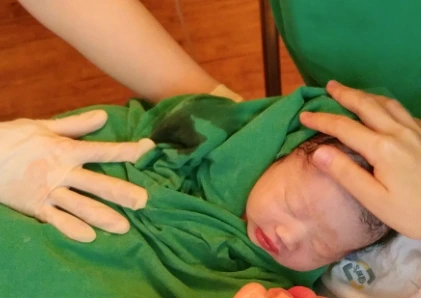 비교적 짧은 진통을 겪었음에도 숨을 거세게 내뱉고 마시다보니, 목이 말라 있어 침을 꼴깍 삼켰던 기억이 난다. 나는 고개를 살짝 들어 어렴풋이 아이의 형체를 확인하고서 머릿 속이 하얘진 채 그대로 뒷통수를 침대 위에 박았다. 가까스로 숨을 고르고 있을때, 간호사가 아이를 초록색 싸개에 말아 내 코 가까이 붙여주었는데 그제서야 출산을 실감할 수 있었다.