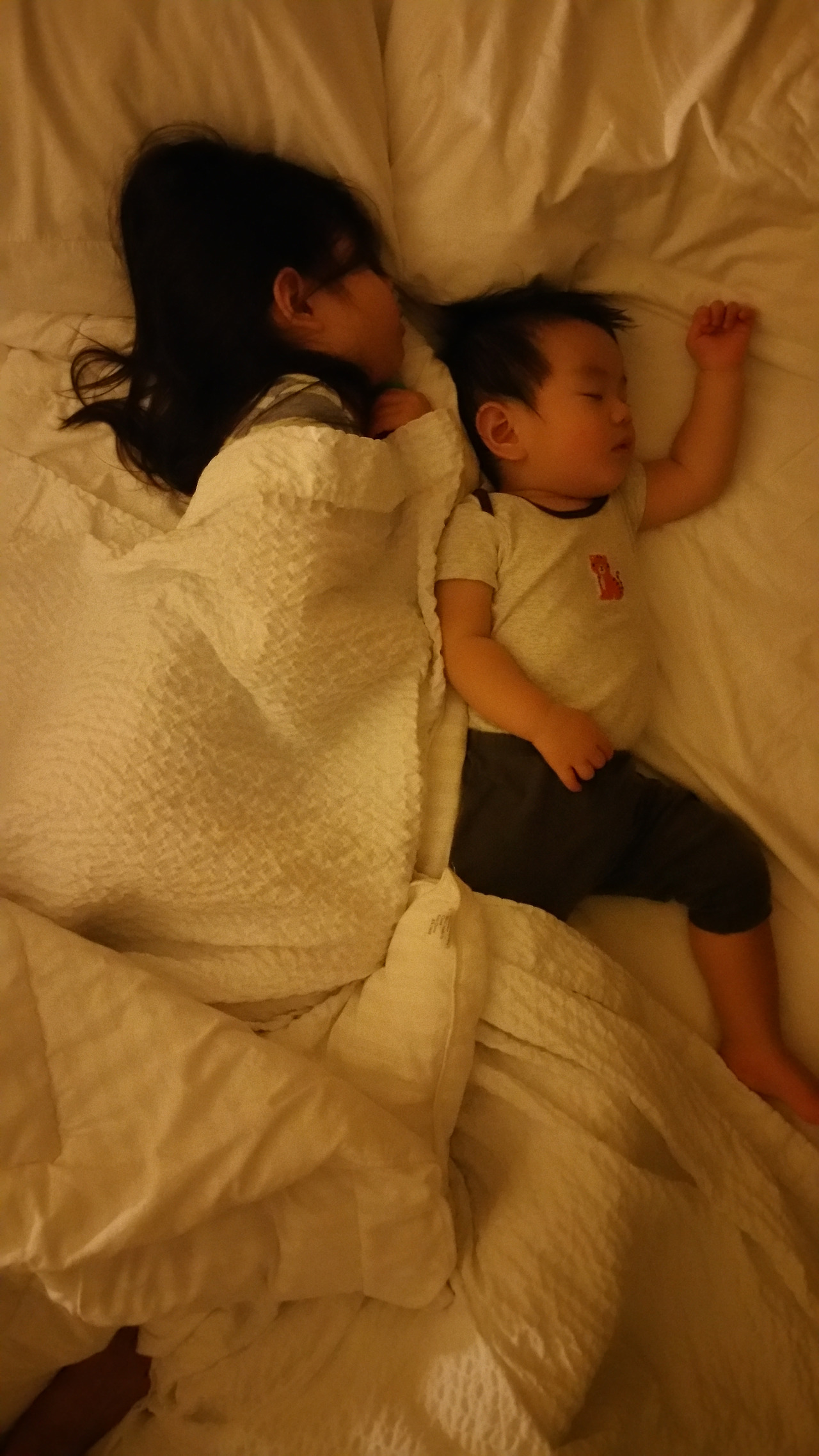 남편은 호텔방에서 밤 10시까지 노트북을 열고 일을 했다. 시아버지는 맥주를 사서 남편을 기다리다가 맥주의 유혹에 넘어가 혼자 맥주 두 병을 끝냈다. 일을 마친 남편이 딸아이와 옆방으로 넘어가고 나는 침대 위에 가로로 누워서 졸린 둘째를 토닥여주었다.
