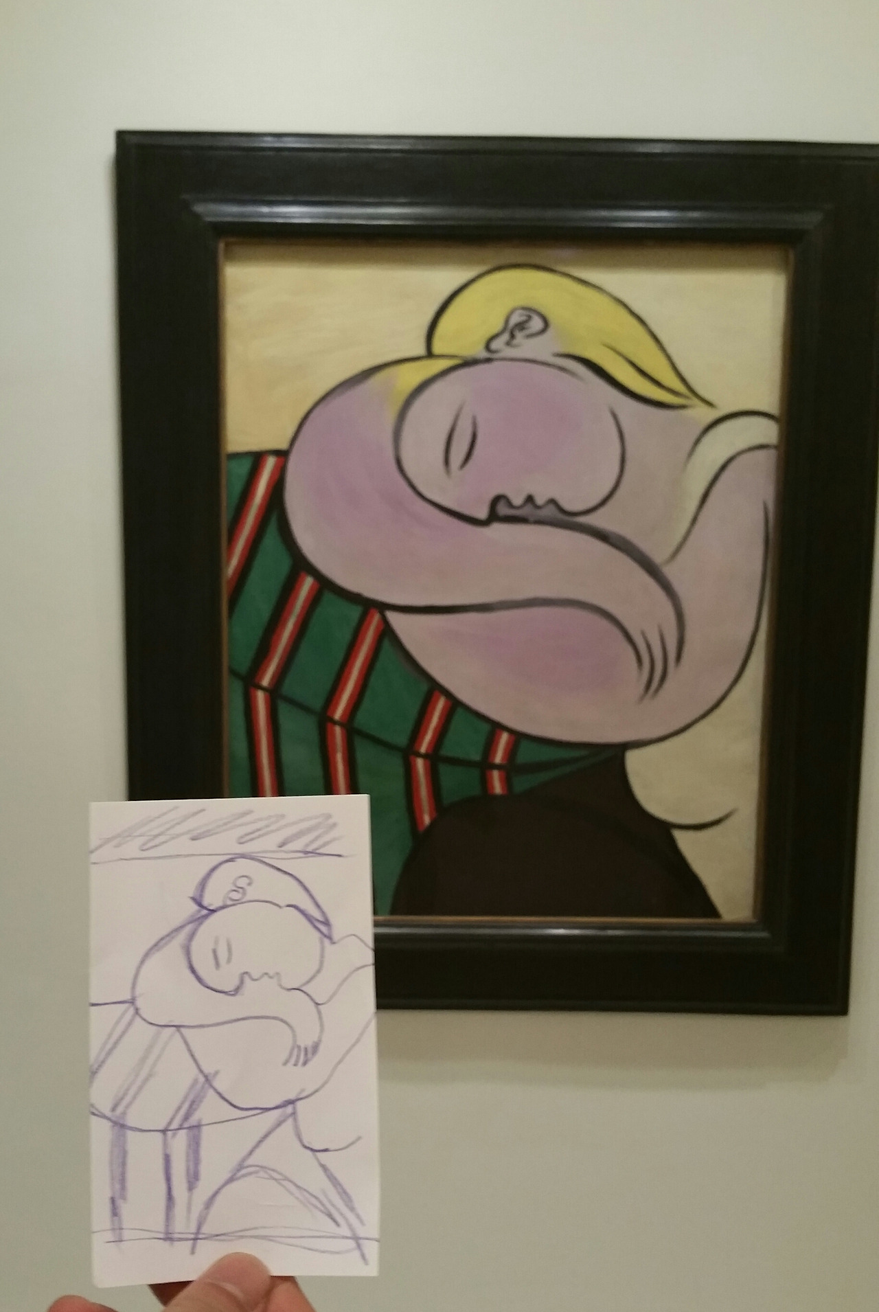 피카소의 그림을 보다가 나도 한 번 그려보고 싶었다. 한 쪽 구석에서 남편도 저 그림을 그리고 있었다는 걸 알고 나는 소리내어 웃었다. 우리가 그린 피카소는 아이들이 갖고 놀다가 잃어버렸다. 딸아이의 선택을 받은 나의 피카소만 사진으로 남았다.
