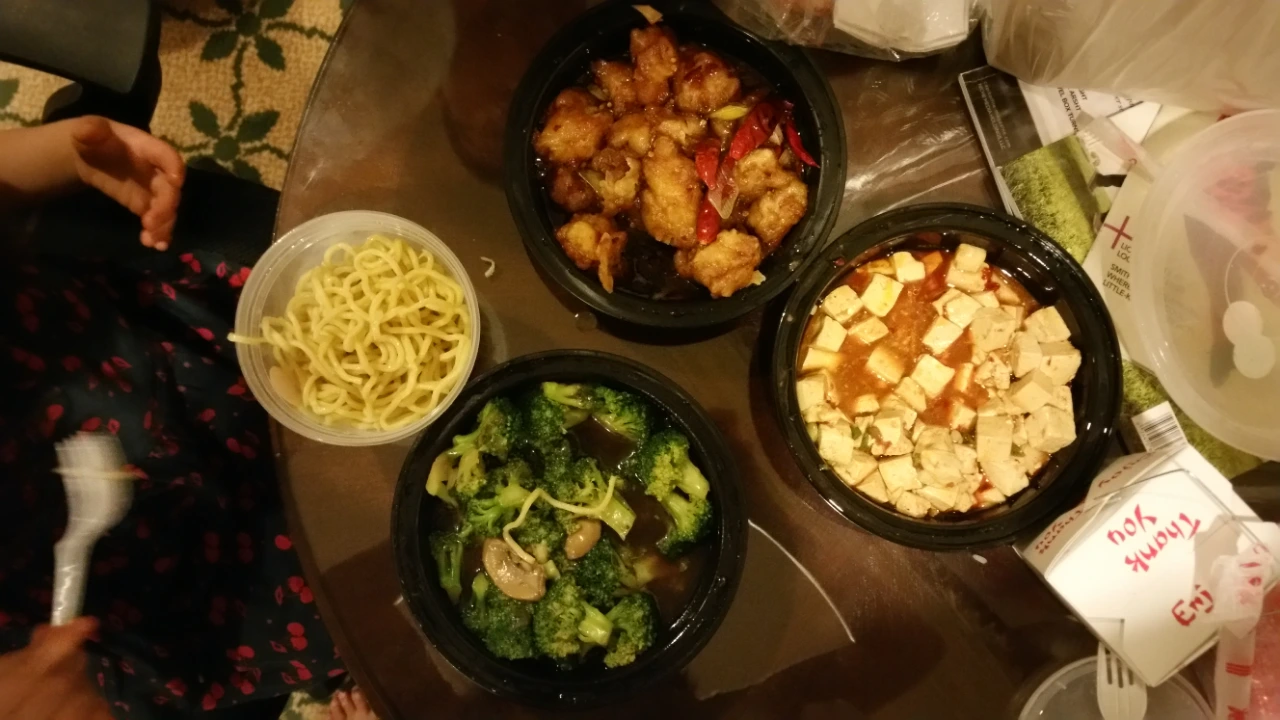호텔에서 빈둥거리다 중국음식을 호텔로 배달시켜 먹었다. 딸아이는 소스도 없는 맨 국수가 저녁이었다.