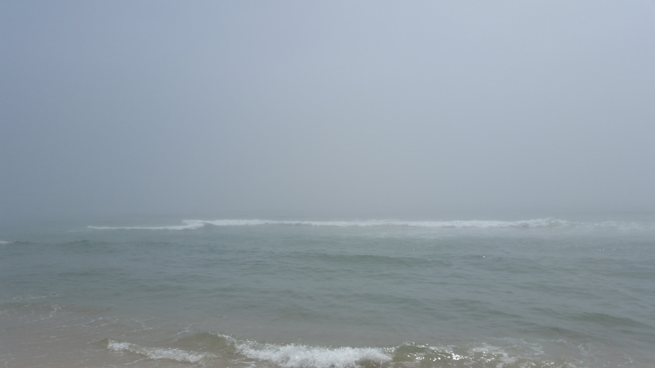 일요일, 호텔에서 차를 타고 바다로 가는데 한낮인데도 안개가 자욱했다. 우리는 조금 무섭기까지 한 풍경 속에서 조개껍데기를 줍고 돌멩이도 줍고 모래구덩이를 파면서 시간을 보냈다. 저녁이 되자 비가 내렸다, 그쳤다. 뿌연 일요일의 날씨는 정답이 비인 퀴즈의 힌트였던 것이다.