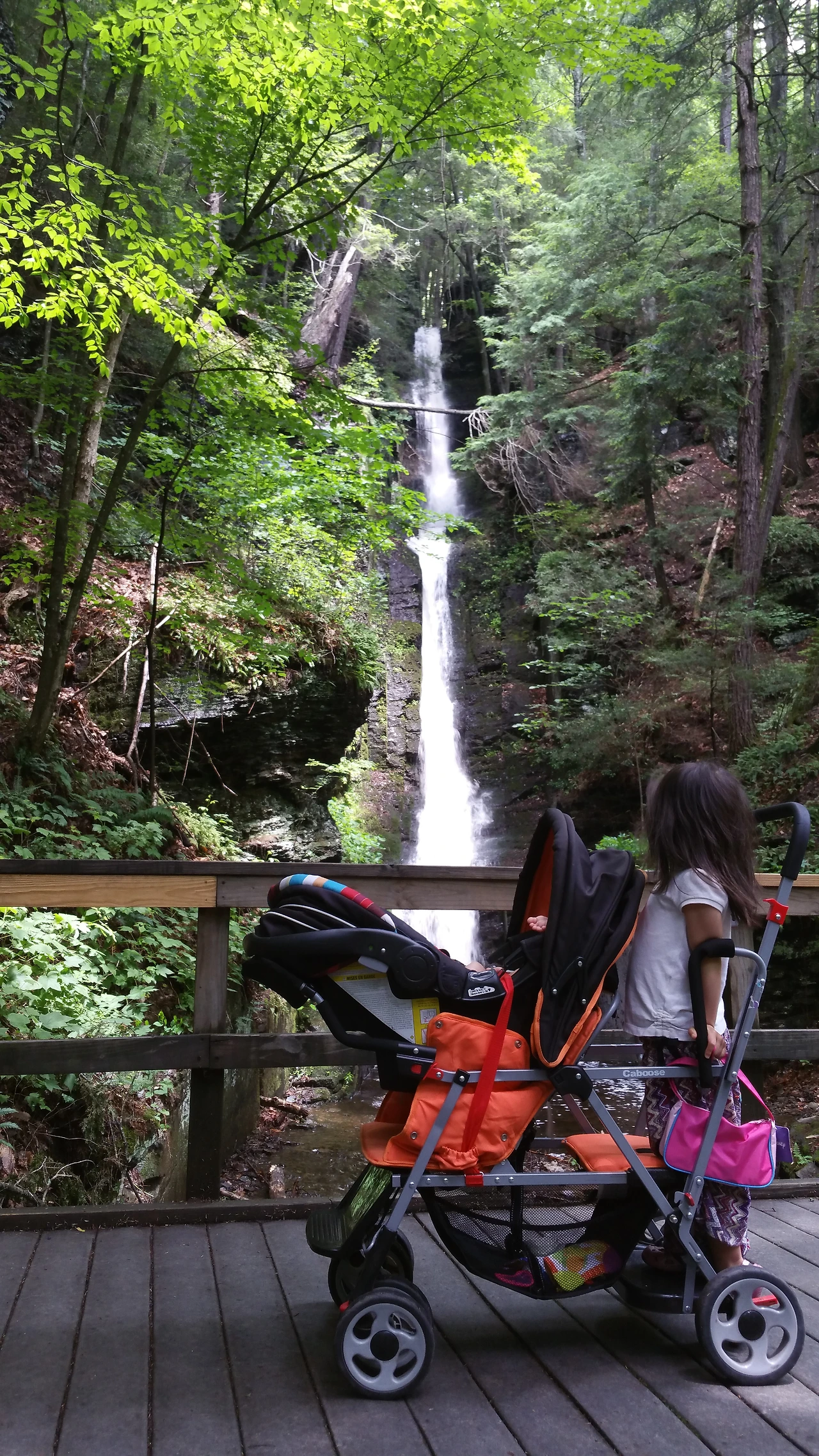 집으로 돌아가는 길에 이정표를 따라 폭포를 보러 들어갔다. 유모차를 몰고 다니기 쉽게 길이 나있다.