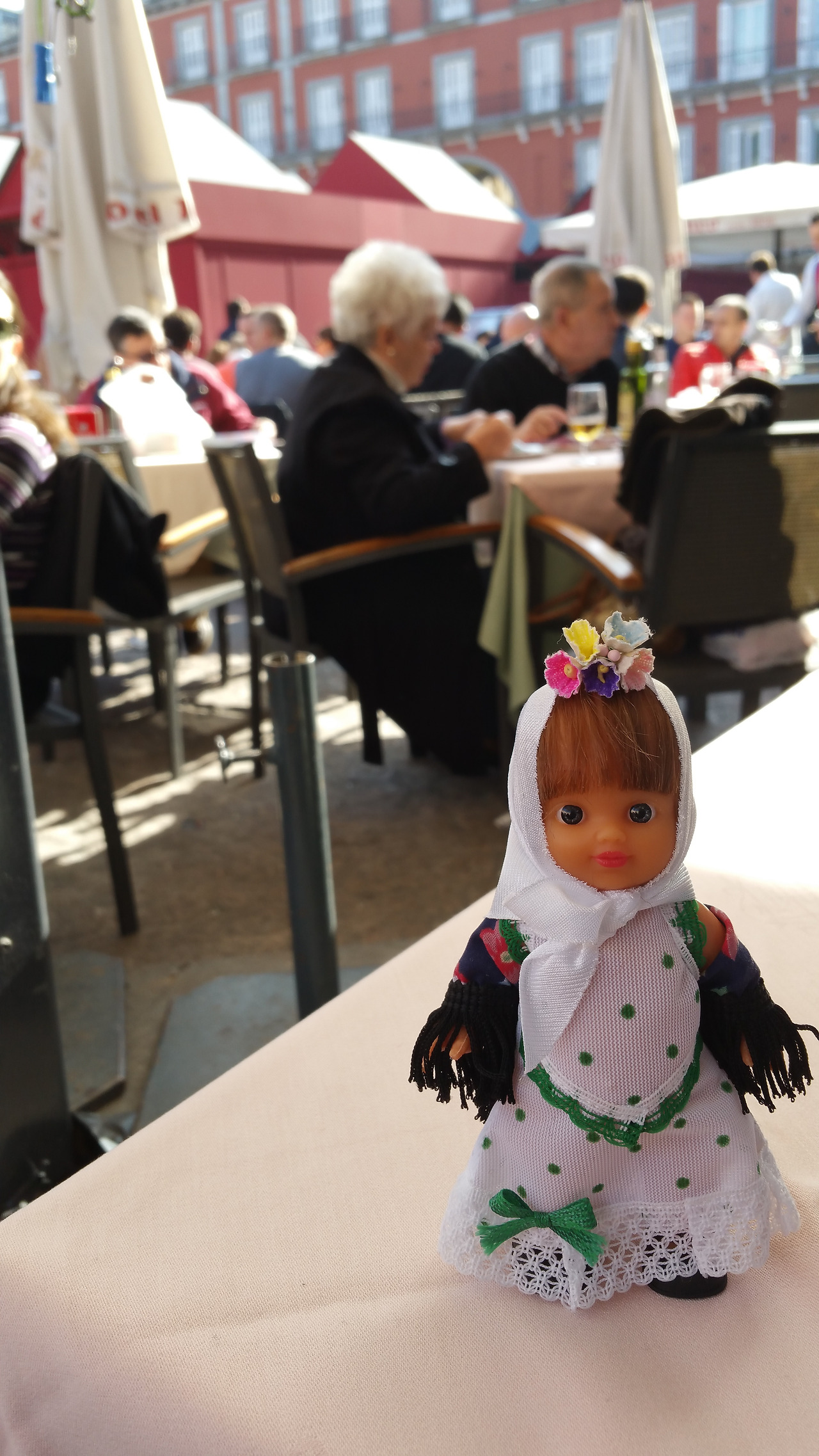 자고 있는 둘째를 깨우지 않고 옷을 갈아입힌 다음 우리는 마요르 광장으로 갔다. 딸아이가 친구 기념품을 사야한다고 해서 우리는 광장에 있는 기념품 가게와 장난감 가게 거의 모두를 들락날락했다. 그리고 할아버지가 된 아빠와 중년의 딸이 같이 일하고 있는 장난감 가게에서 마드리드 전통의상을 입은 인형을 두 개 샀다. 딸아이에게는 친구가 좋아할 만한 선물을 고르는 것과 자기가 갖고 싶은 것을 찾는 것이 같은 의미이다.
