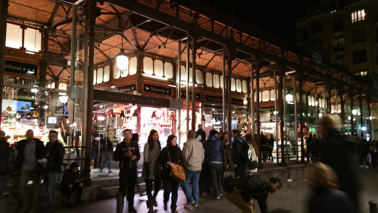 아이들을 데리고 밤늦게 산미구엘 마켓에 갈 수 있었던 건 시차 덕분이었다. 마켓 안에 사람들이 무척 많았는데 그 많은 사람들은 연인들에게는 없고 유모차를 밀고가는 우리 길에만 붐비는 것 같았다. 남편은 음식 주문에 타고난 사람 같았고.