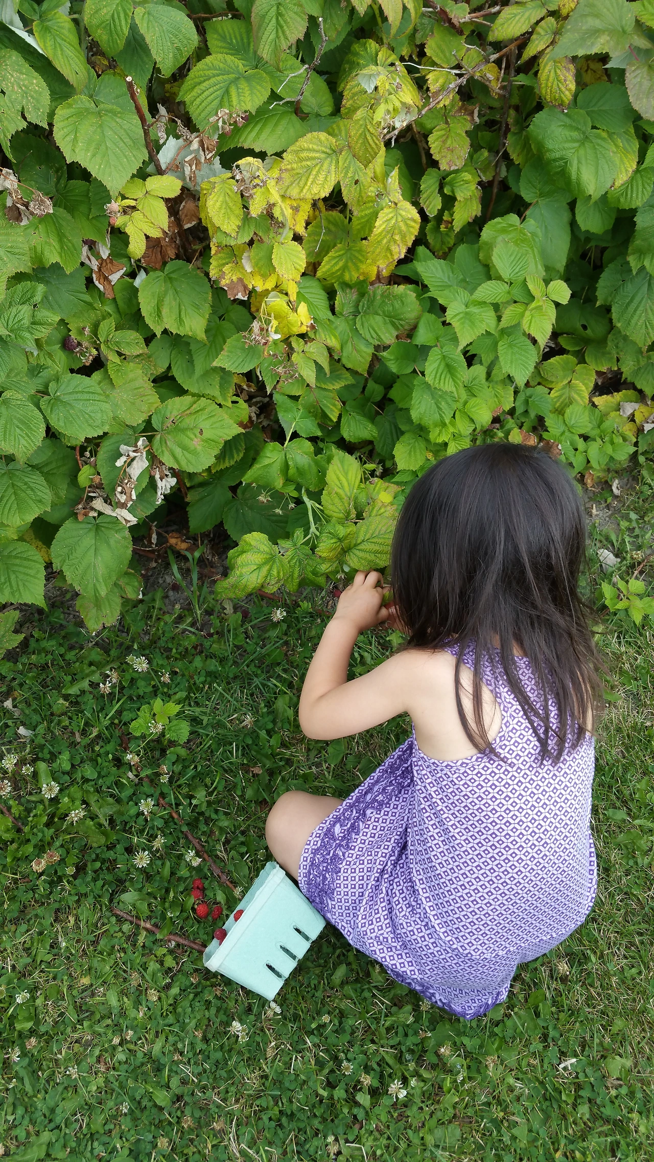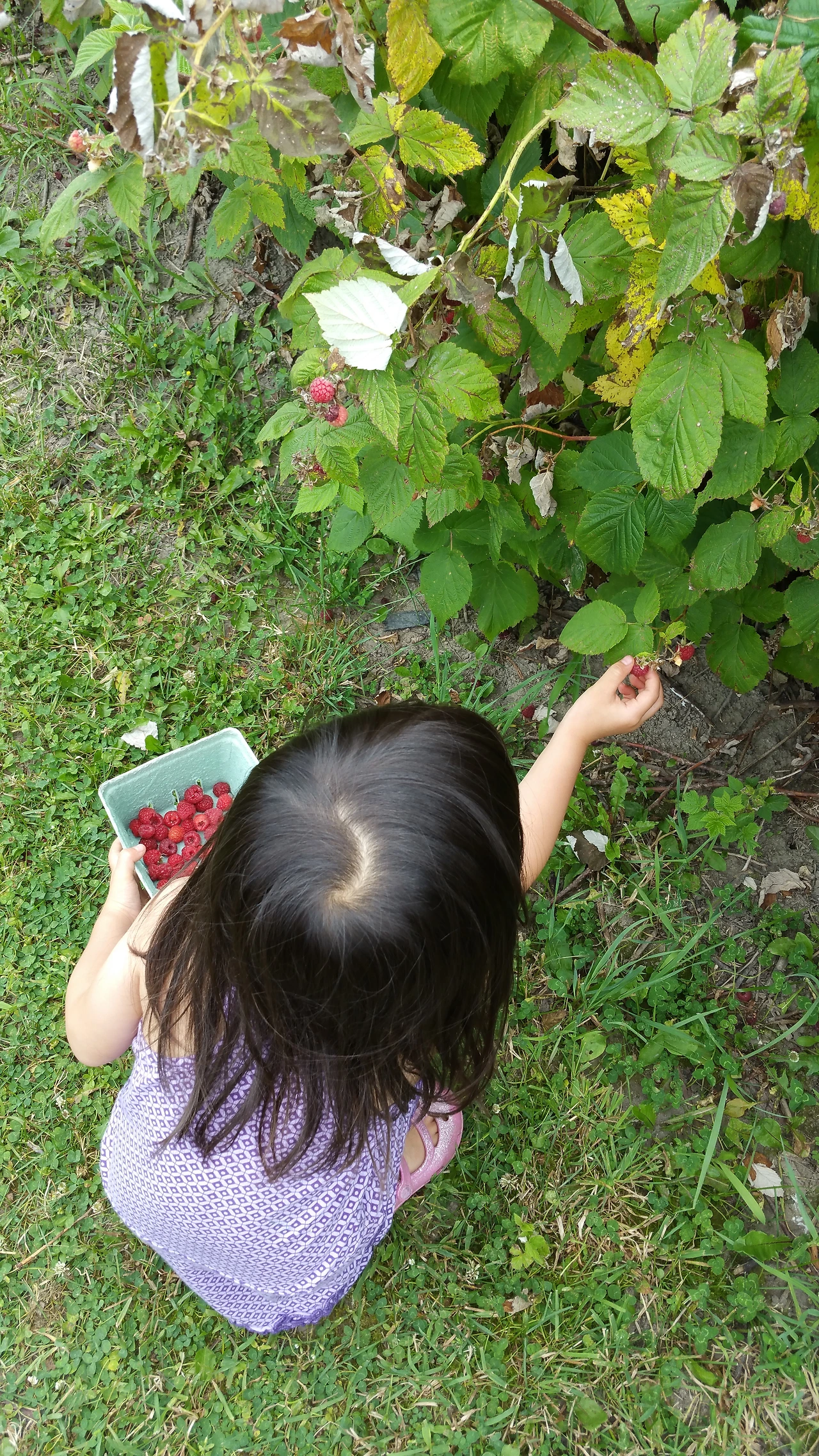 시댁에서 차로 15분 떨어진 농장에서 라즈베리를 땄다. 작은 통은 5불, 큰 통은 10불이다. 우리는 큰 통 하나를 딸아이에게 맡겼다. 라즈베리를 따면서 먹은 것까지 합하면 우리는 본전을 뽑고도 남는다.
