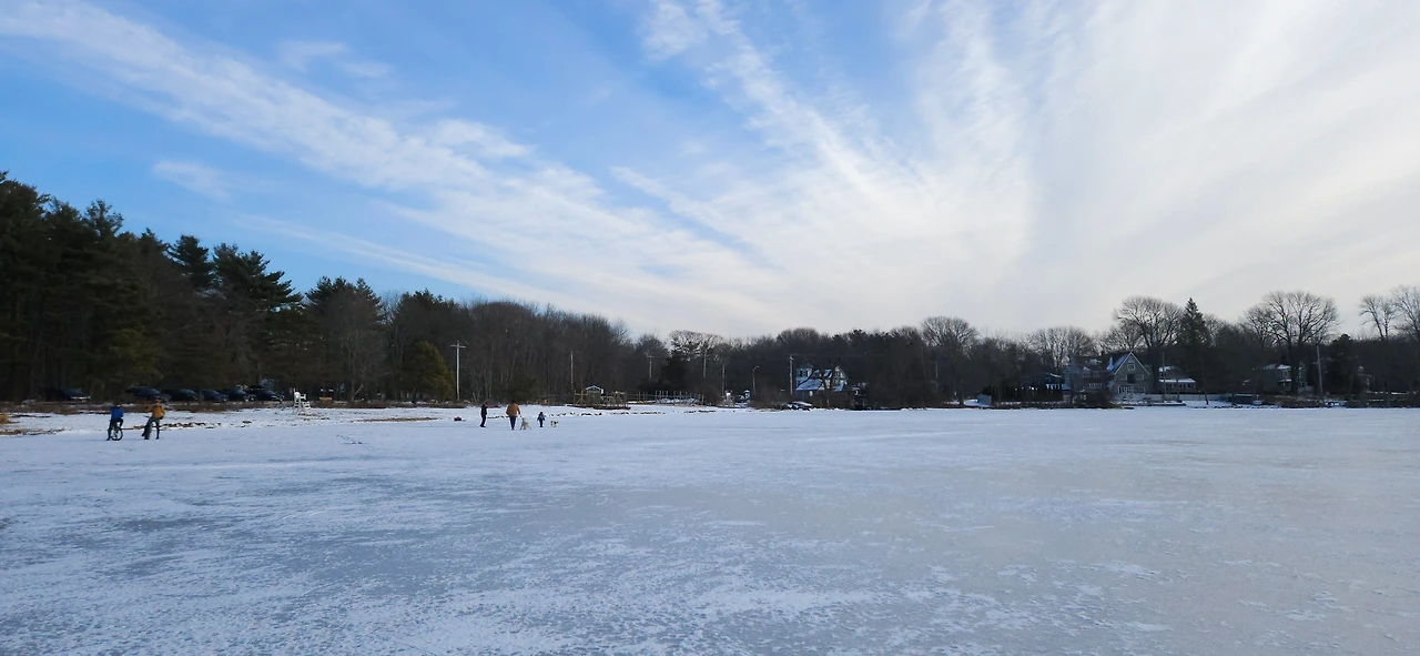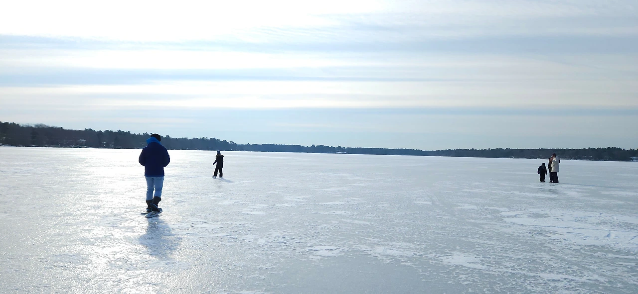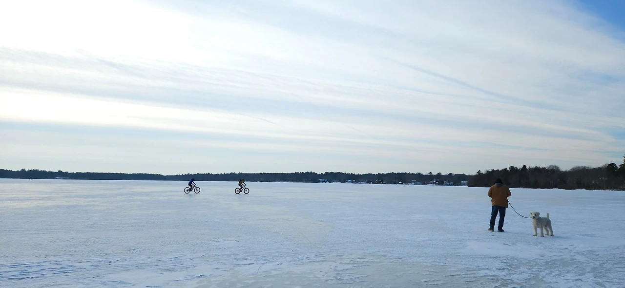 이 계절이 추위로 얼려버린 호수 위로 어느 두 사람이 나타나 자전거를 타고 달린다. 그 주위엔 강아지와 산책 나온 사람도 있고, 우린 그들로부터 멀찍한 거리에서 아이스 스케이트를 신은 채 직선과 곡선을 이어 이리저리 미끄러져 다닌다. 한동안 끊임없이 물결치며 흐르던 호수가 단단히 멈춰 선 자리를 온통 다 차지하고, 매 순간 풍경을 움직임으로 바꾸면서, 그런 서로를 가만히 음미하는 우리.