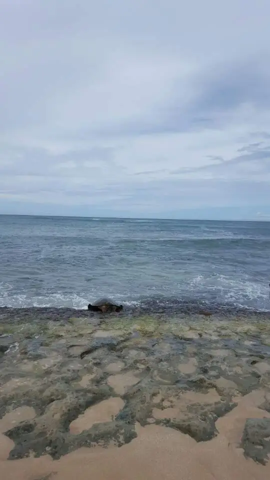 숙소로 돌아오는 길 바닷가에 내려서 바다거북이 파도 타는 것도 구경했다.