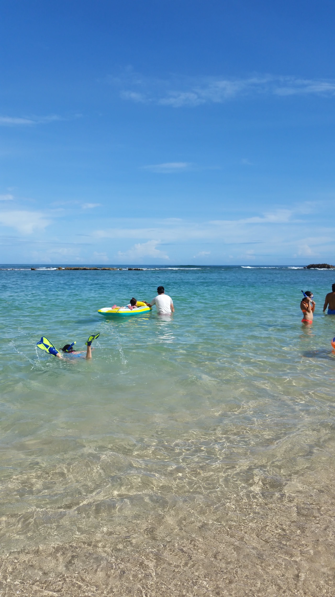 바닷물이 깨끗하다. 사람과 물고기가 물 안에 같이 있다. 내 품에 안겨 땀을 뻘뻘 흘리는 둘째를 데리고 바다 속에 들어갔더니 너무 좋아한다.