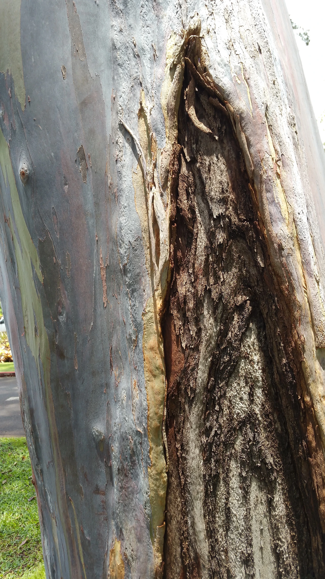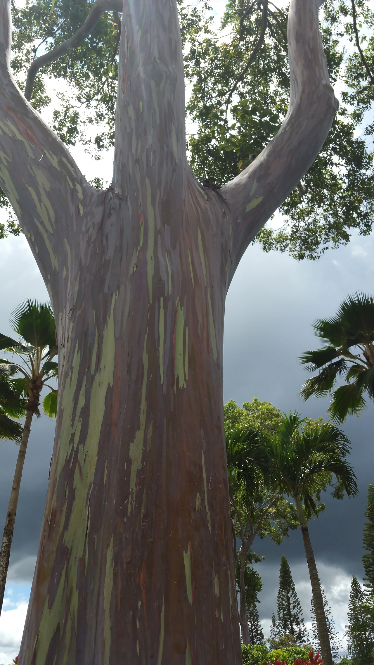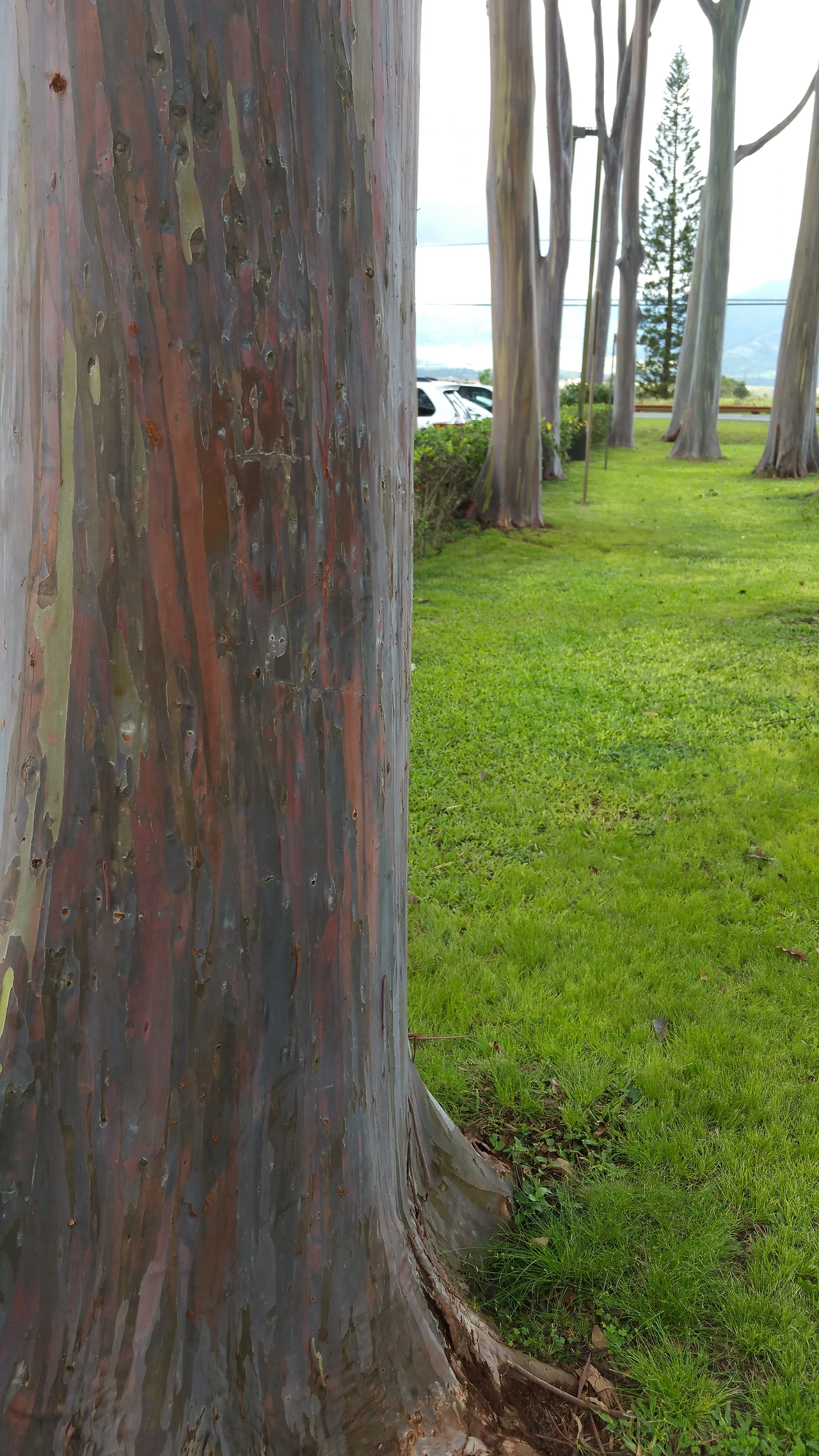 와이키키로 가는 길에 파인애플 농장에 들렀다. 파인애플 농장 주차장에 높이 솟은 나무들을 보고 우리는 감탄했다. 사람들이 색칠한 나무 아니냐고 남편과 실랑이를 벌였지만 이 나무 이름은 Rainbow Eucalyptus, 나무 껍질은 사람들이 색을 입힌 게 아니라 아름답게 타고난 것이다.