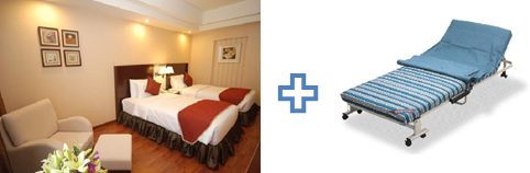 (왼쪽은 Singapore Quality Hotel 싱글 룸 모습. 오른쪽은 간이침대.)