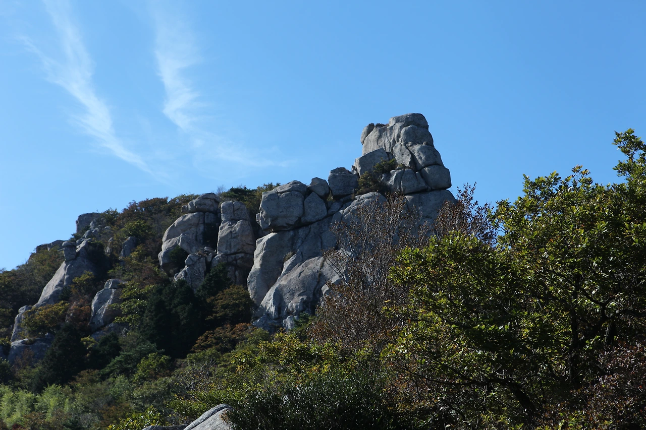 아래에서 볼 때 금산의 형태는 육산이지만 정상부 부근에는 천태만상의 기암괴석들이 들어서 있어 그 모습이 장관입니다. 보광산으로 불리던 산의 이름은 조선을 건국한 이성계가 이곳에서 100일 기도 후 비단(錦) 자를 써서 금산이라 부르기 시작하여 지금에 이르고 있다 합니다.