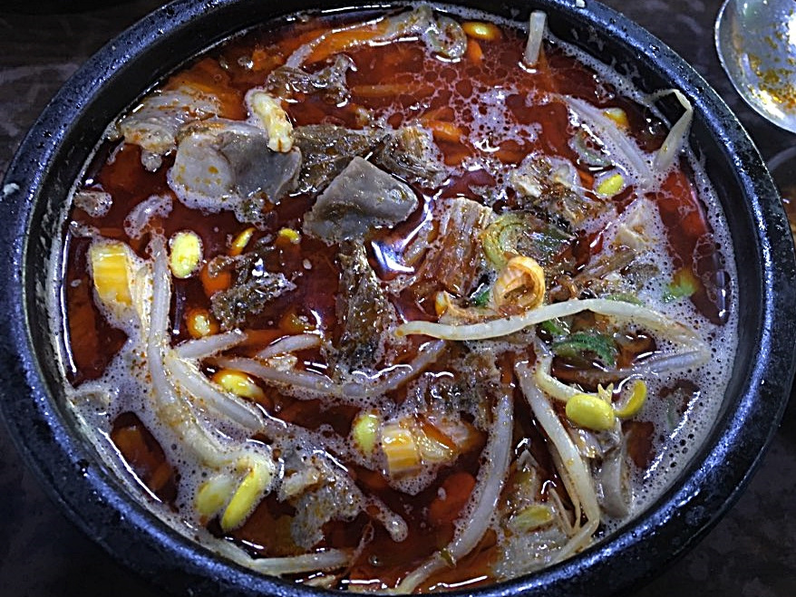 하지만 황소 해장국 맑은 탕들은 놀랍게도 투명하며 맑습니다. 기름기 또한 적절하게 제거되어 있습니다. 구례 목화식당 내장탕처럼 말입니다. 맑다고 해서 육수가 가벼울 거라는 생각은 선입견일 뿐입니다. 맑지만 오래 우려낸 사골처럼 깊이가 있습니다.