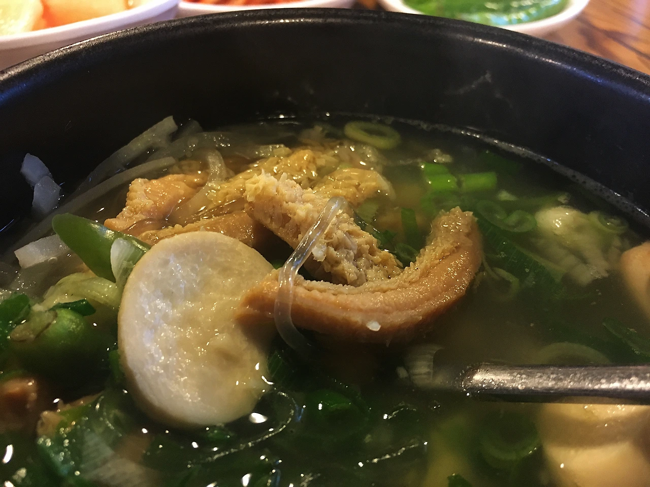 머리고기 등 잡내가 나지 않는 부위를 재료로 하는 소머리국밥이나 나주곰탕에서 쓰이는 맑은 육수와 비슷합니다. 사실 소 내장 부산물로 이렇듯 맑은탕을 끓인다는 것은 어지간한 배짱 아니면 쉬운 일이 아닙니다. 앞서 이야기했듯이 소 내장은 특유의 잡내와 손질이 여간 까다로운 게 아니기 때문입니다.