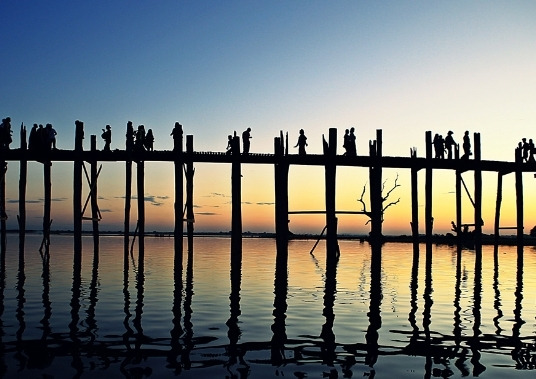 미얀마의 대표적 관광지 가운데 한 곳입니다. 1,849년에 따웅타만 호수 위에 만들어진 이 다리는 높이가 3m에 넓이 2m, 길이 1km에 이르는 세계 최장의 목조 다리입니다. 단단하기로 유명한 미얀마 티크 목으로 만들어진 이 다리는 마하 간다 용사원과 아마라푸라 사원을 오가는 탁발승들을 위해 만들어진 ‘탁발교’입니다. 저녁노을이 질 무렵의 우베인 다리는 그 풍경이 가히 압권입니다.