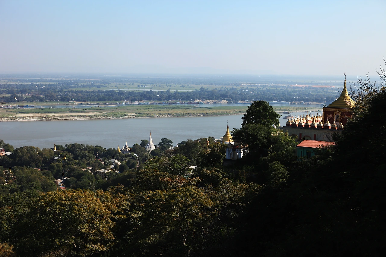 사가잉 힐은 만달레이에서 20여 킬로 떨어진 곳에 있는 언덕입니다. 이라와디강가 높이 240미터의 구릉지대를 일컫는 사가잉 힐은 고대도시 사가잉의 중심부이며 언덕에 올라서면 멀리 만달레이뿐만 아니라 미얀마의 젖줄 이라와디 강과 수백여 기의 탑군을 한눈에 조망할 수 있습니다. 미얀마가 불탑의 나라임을 바간과 함께 상징적으로 보여주는 곳이라 할 수 있습니다.