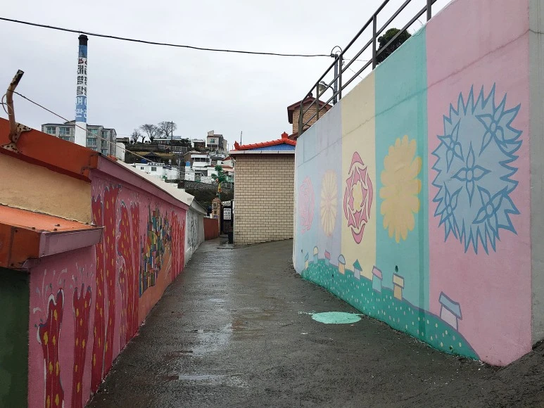 비탈 지역을 일컫는 말이 ‘벼랑’이고 벼랑의 경상도 사투리가 ‘비랑’이다. 동쪽 비탈진 곳에 있는 마을이라는 뜻을 지닌 곳이 바로 동피랑 마을이다. 강구안이 있는 중앙시장에서부터 비탈진 언덕 위까지 계단 길을 따라 마을이 이어진다. 오르는 골목길에는 다양한 벽화가 그려져 있어 그림을 따라 골목길 오르는 재미가 쏠쏠하다. 하지만 이곳은 서민들의 오랜 삶터로서 그들의 애환과 고단함 또한 그대로 묻어있는 곳이기도 하다. 골몰길을 따라 걷다 보면 어느새 마을 정상 언덕이 나타난다. 이곳에 올라서면 쉴 새 없이 오가는 배들과 그 배들을 맞이하는 강구안 전경이 한눈에 들어온다.