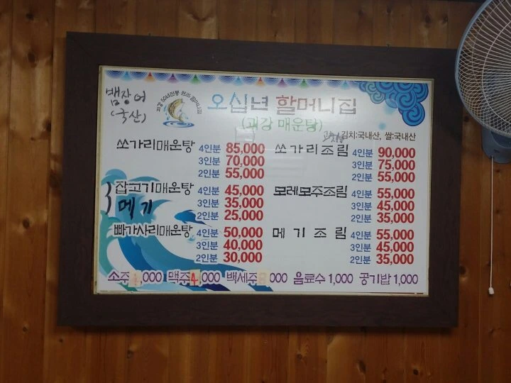 메뉴는 간단합니다. 쏘가리 매운탕, 메기 매운탕, 빠가사리 매운탕, 그리고 잡어 매운탕과 조림 등이 있습니다. 좋아하는 취향에 따라 맛보면 됩니다.