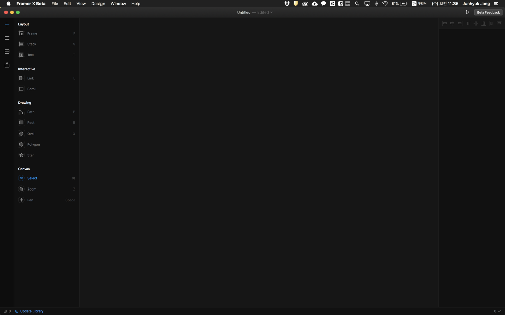 올 가을 출시 예정인 Framer X의 베타 버전이 사전 신청 순으로 배포되고 있습니다. 약간의 기다림 끝에 저에게도 기회가 닿아 간단히 기능들을 살펴보았습니다.