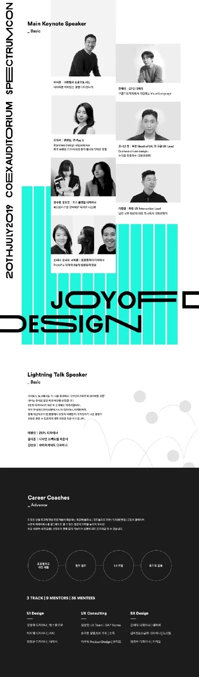 한껏 늘어난 문자는 그 길이만큼 경계를 만들 수 있다. 이것은 공간을 나누기도 하고, 때로는 그 자체가 하나의 프레임으로서 기능하기도 한다. 의도한대로 잘 풀어내기란 쉽지 않겠지만, 제대로 활용할 수만 있다면 심미성과 효율성을 모두 잡을 수 있는 좋은 방법이 될 것 같다.