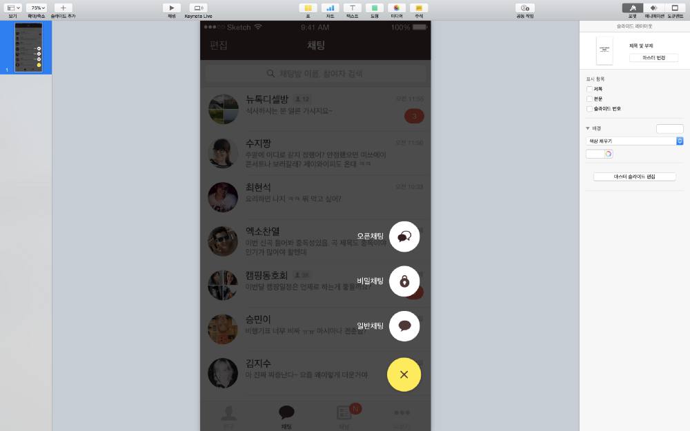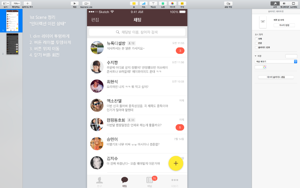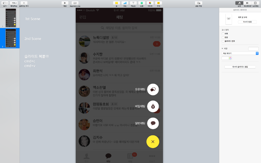 만약 슬라이드를 아이클라우드에 저장했다면, 아이폰 키노트 앱에서도 확인이 가능합니다. 역시 모바일 인터랙션은 모바일 디바이스에서 확인해 봐야겠죠 :)