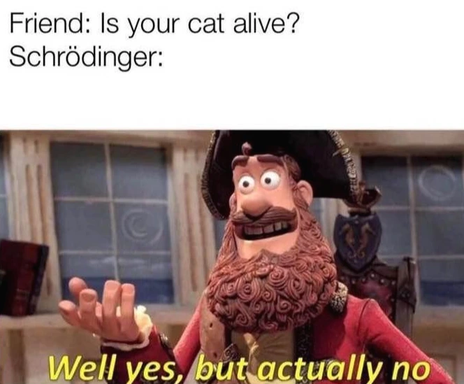 슈뢰딩거의 고양이는 양자역학을 설명하기 위한 가장 쉬운 도구이다. 외부에서 관측할 수 없는 상자 안에, 고양이를 넣어두고, 50%의 확률로 방사선 물질이 방출되도록 설정한다. 이때, 상자 속 고양이는 죽어있을까, 아니면 살아있을까? 고양이는 50% 확률로 죽어있거나, 동시에 살아있는 상태인 걸까?