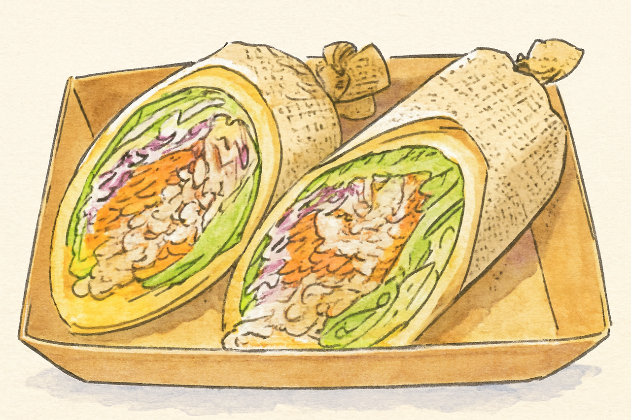 오키나와 소바와 타코스 롤 햄 치즈