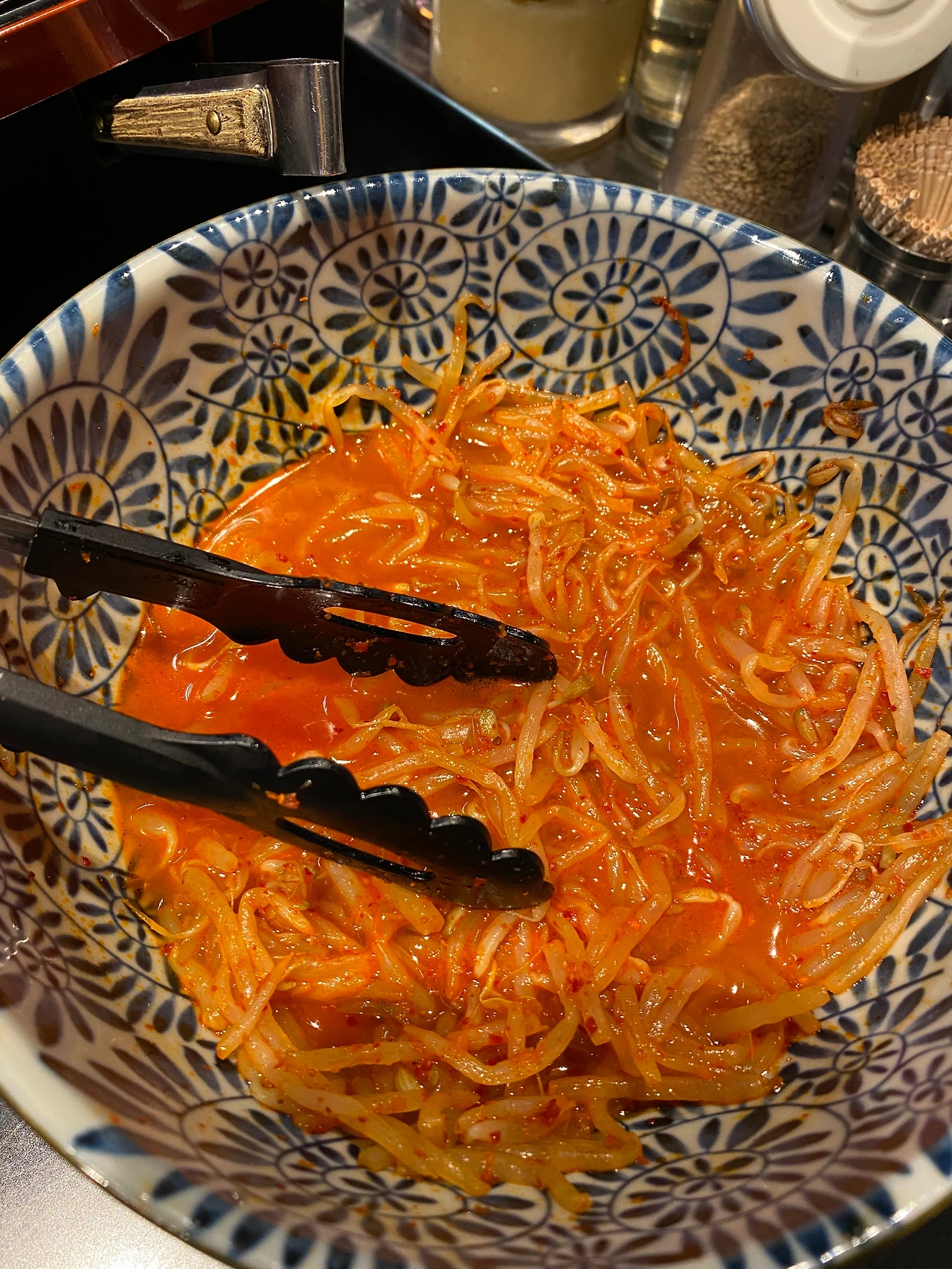 짭짤하고 진한 돈코츠 국물과 쫄깃한 면발도 좋지만 내가 이곳을 좋아하는 이유는 바로 한국식 숙주볶음과 파를 무제한으로 넣어 먹을 수 있다는 점. 해장이나 술 마실 때나 배고플 때나 전천후인 설렁탕집을 찾기가 쉽지 않은 도쿄에서 허전함을 달래주는 고마운 라멘이다. 게다가 직접 만든 교자와 작은 안줏거리들도 꽤 맛있는 편이다.